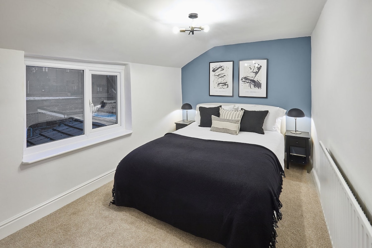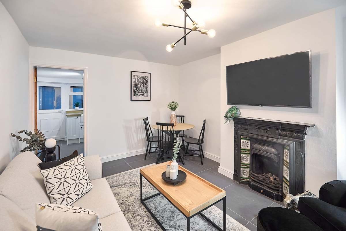 Upon entering the property, you’ll be welcomed into the living and dining area. Whilst transformed into a modern and sophisticated space, you’ll still find traditional features such as the sash window. A great spot to unwind, you can relax on the comfy sofa and turn on the flat screen TV to keep up with your favourite shows. Also sharing this space is the dining area which includes a round dining table and four chairs.
