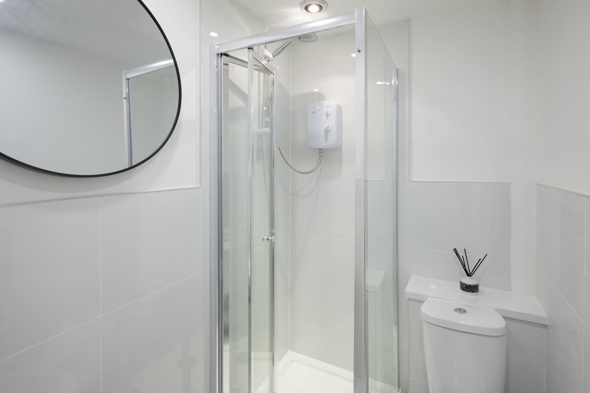 Take the stairs up to the first floor and you’ll find the bedrooms. Both bedrooms are beautifully decorated and styled. You’ll find premium bedding and plush soft furnishings to ensure you have the best sleep possible. The master bedroom boasts a comfortable double bed with en suite shower room and the second bedroom is a king.