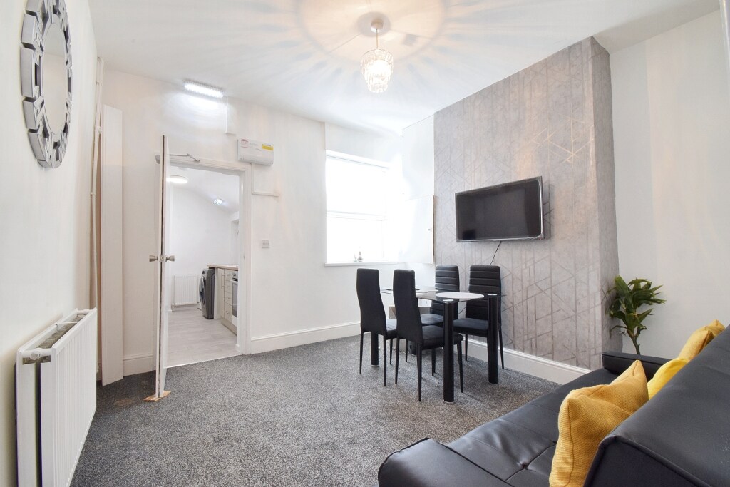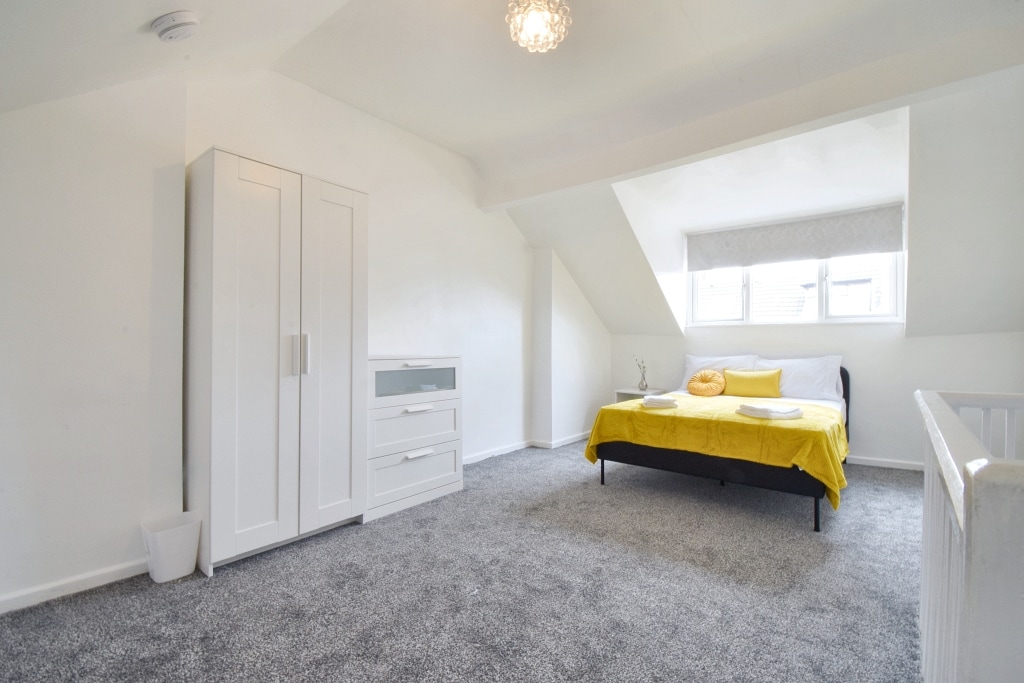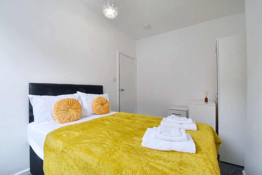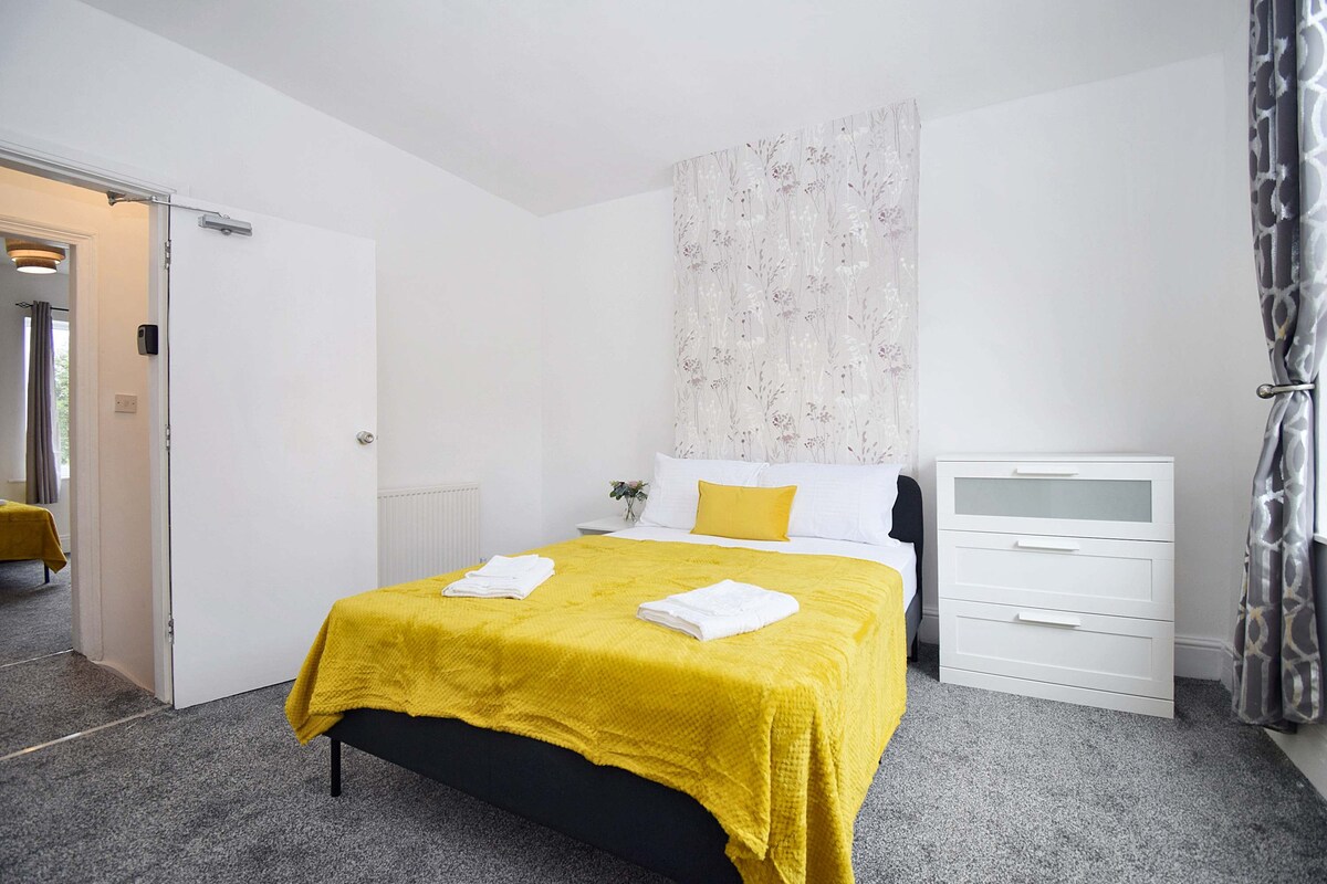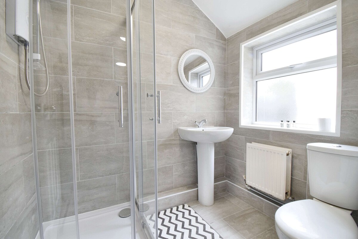 The living area is ideal for a family evening, whether you're enjoying a fun game night or unwinding with a TV show after a day of exploring Mansfield. The property features four double bedrooms, all with clothes storage, plus an additional sofa bed for extra guests. The bathroom includes a shower, and towels and toilet roll are provided for your stay.