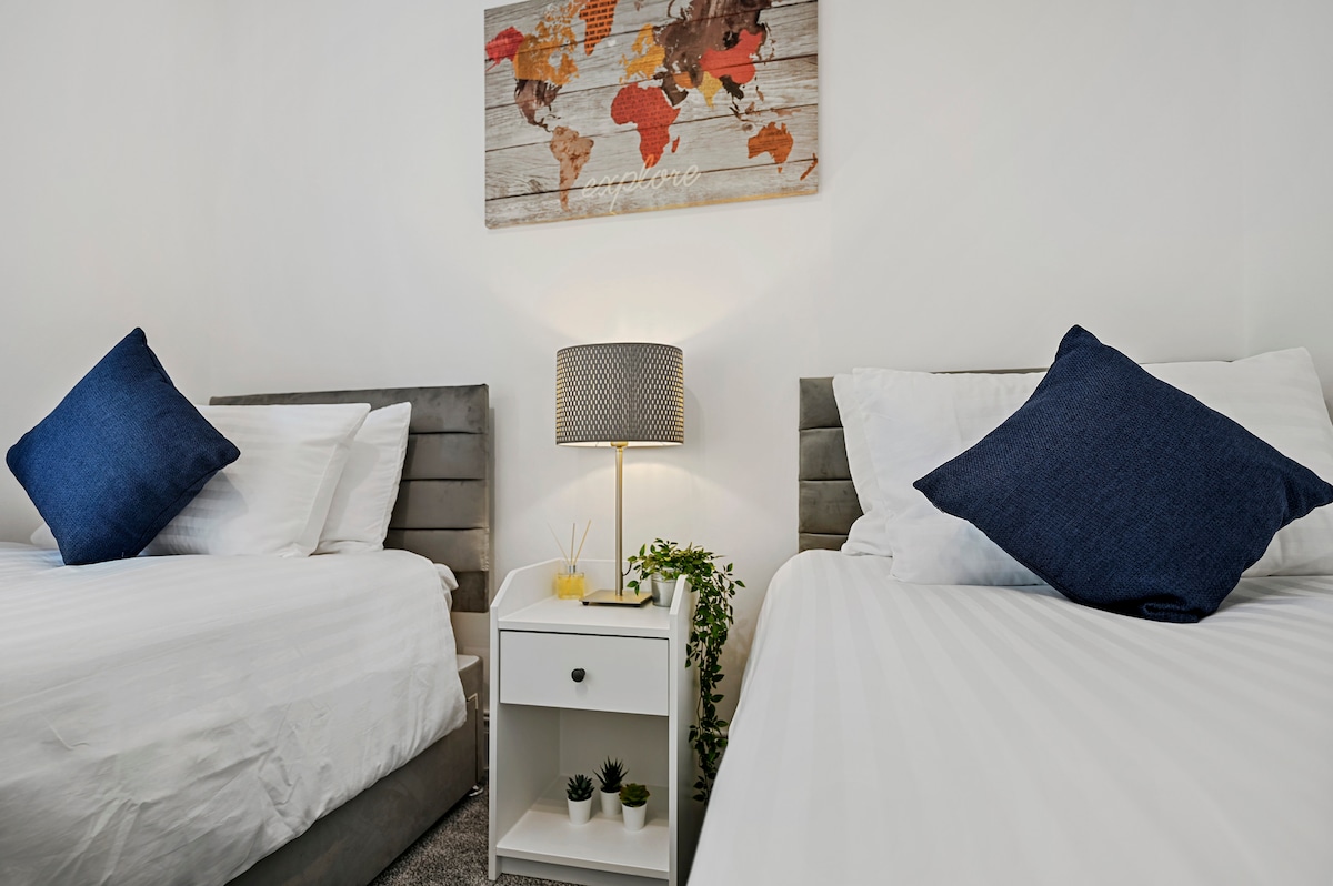 Newly refurbished 2 bed apartment on first floor. Excellent choice for friends, families and contractors. Separate fully equipped kitchen, living/dining room and a family bathroom.-Sleeps up to 6 guests