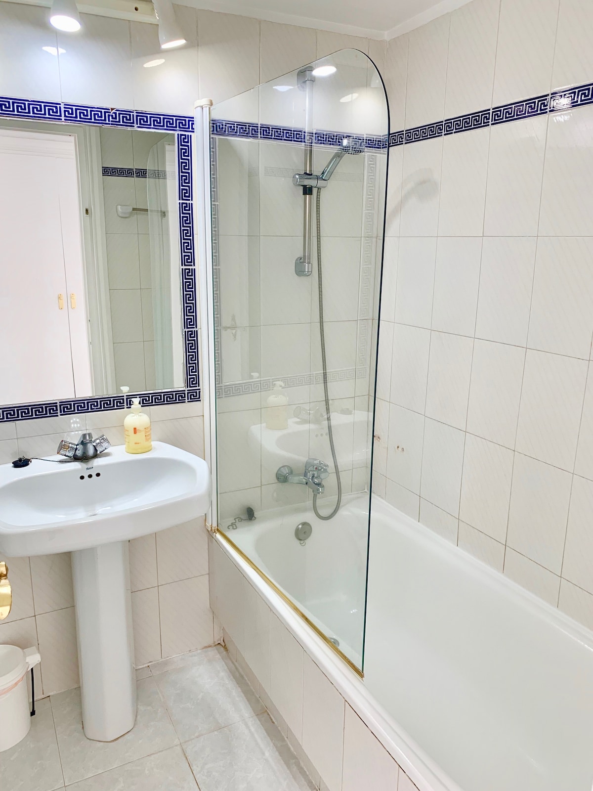 Modern, light and airy, recently redecorated in light colors that will make your stay calm and relaxing, open plan well stocked kitchen with all appliances, should you fancy to cook and bathroom with bath.