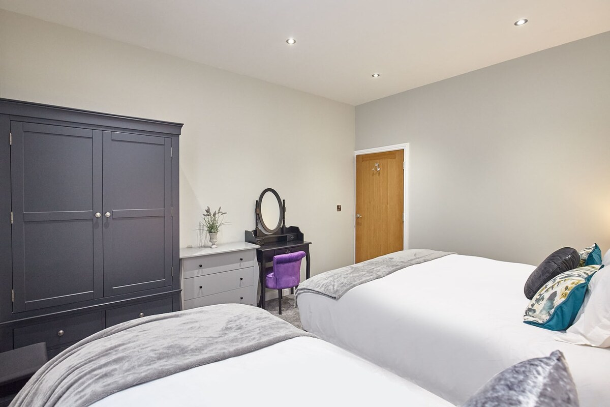 The master bedroom features a super king bed and the second bedroom features a super king and a large single. Both bedrooms feature a dressing table with stool and a freestanding wardrobe and chest of drawers to store your personal items. With sumptuous bedding and luxury linen you are guaranteed a peaceful night sleep. Before you head off, why not enjoy some viewing on the Smart TV? Both super-king beds can be split into two singles upon request.