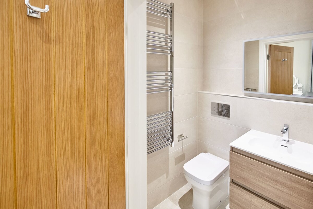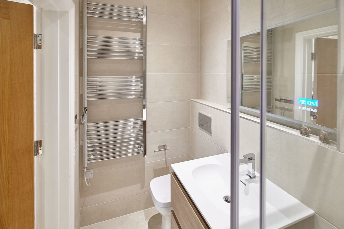 The apartment is home to two bathrooms. The master bathroom features a bath, shower, WC and basin while the second is a shower room with WC and basin.