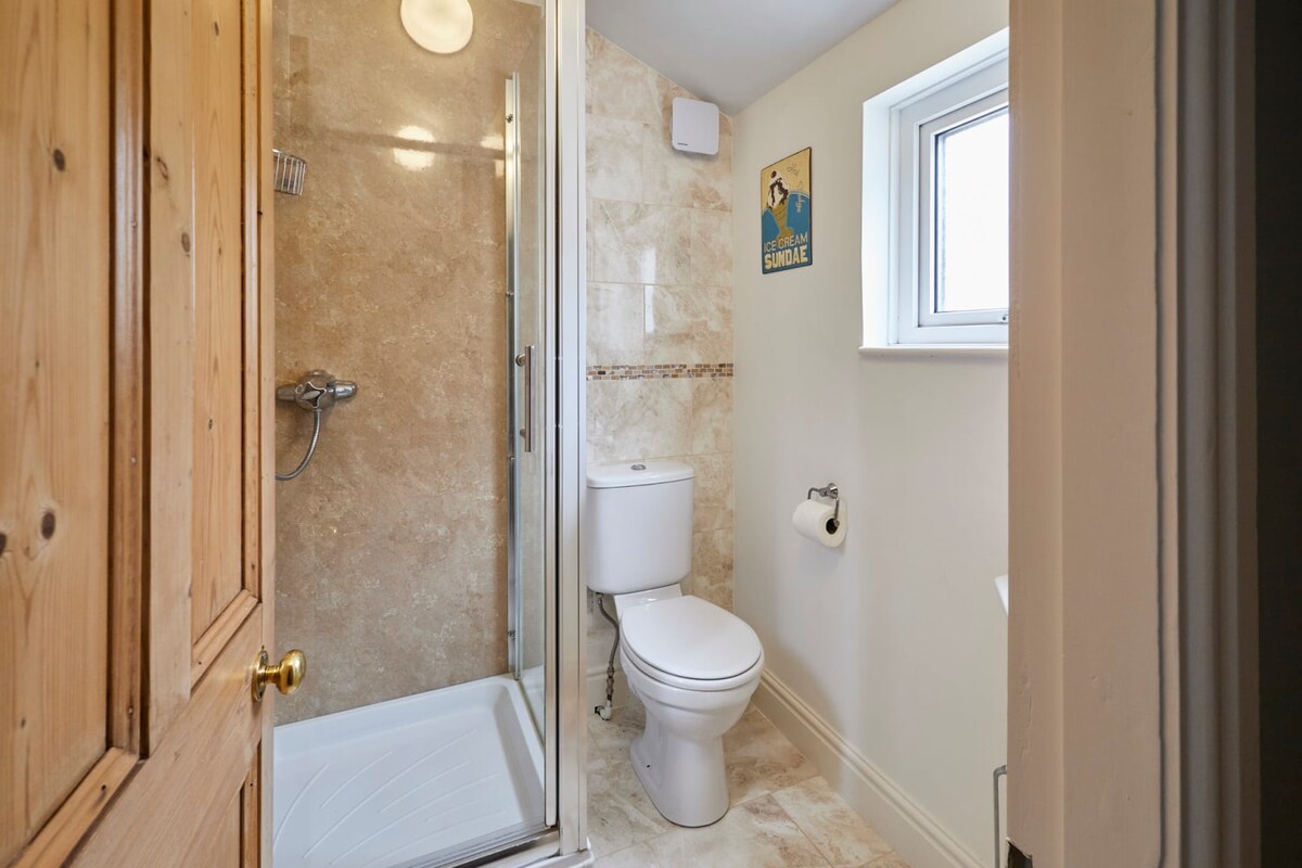 An ensuite bathroom is also located within the space. This space features a walk-in shower, WC and wash basin.