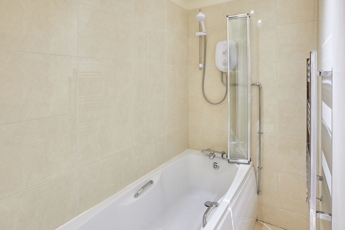 The cottage has two en suite bedrooms. The master boasts a comfortable king size bed and the second room is a double. Both rooms have a neutral colour scheme to create a truly tranquil feel. The en suite bathrooms are complete with a bath and overhead shower, WC and basin.