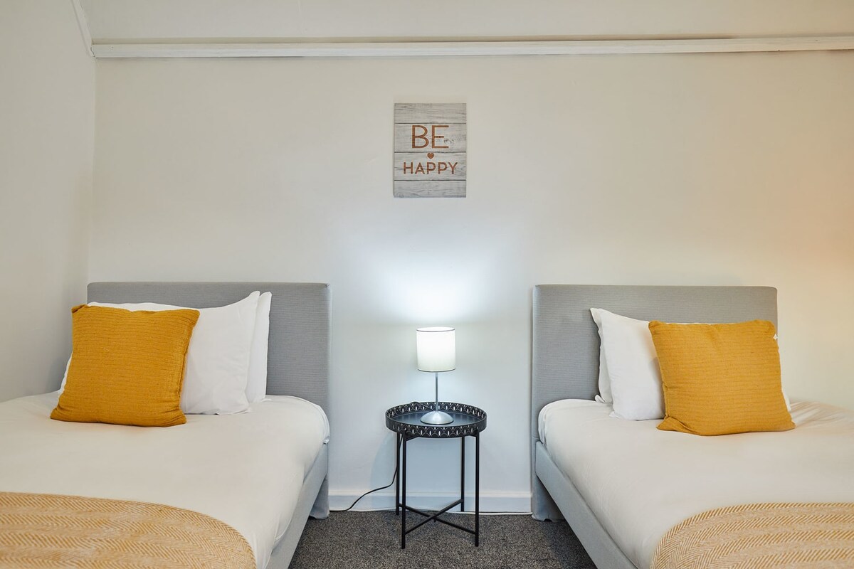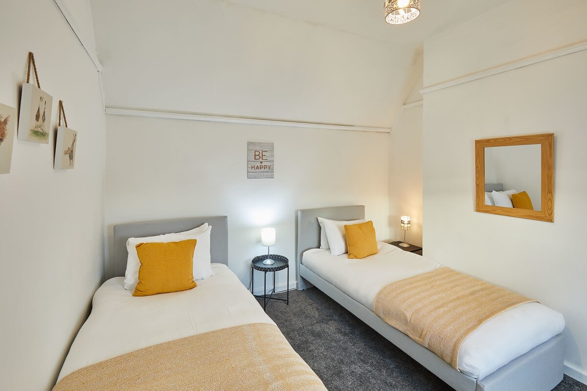 Take the stairs up to the first floor and you’ll find two bedrooms. The master bedroom has a comfortable double bed and the second bedroom is a twin. Both beds boast plush bedding and premium bed linens for a comfortable night's sleep.