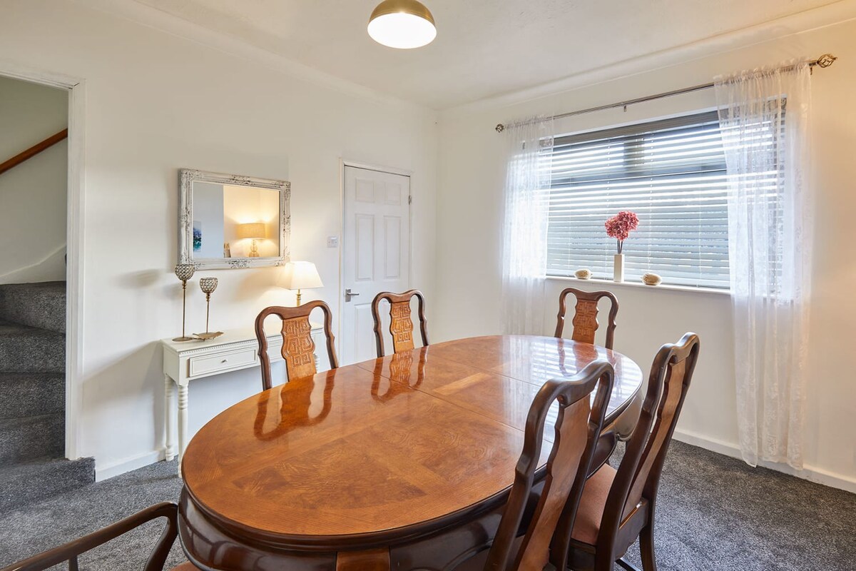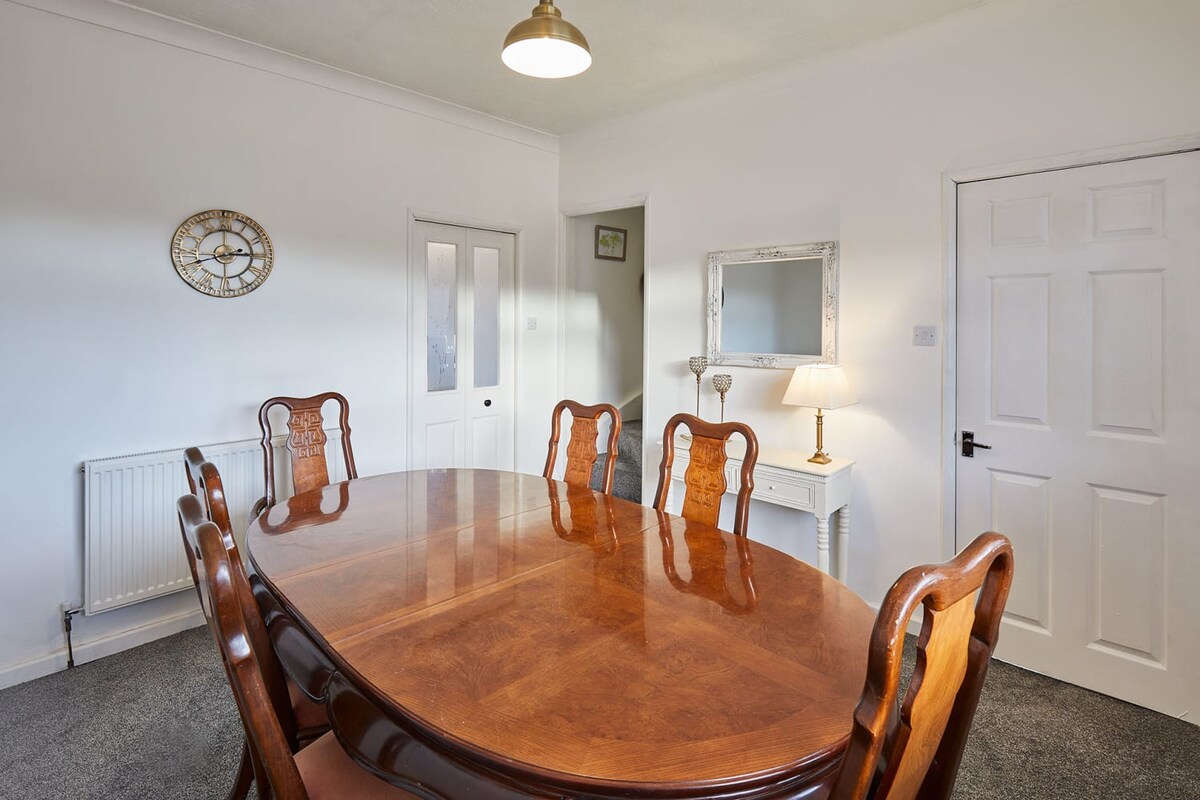 The property also boasts a separate dining room with a large dining table and six chairs. Whether you’ve prepared a home cooked meal or you’re enjoying a takeaway, this space is perfect for dining during your visit.