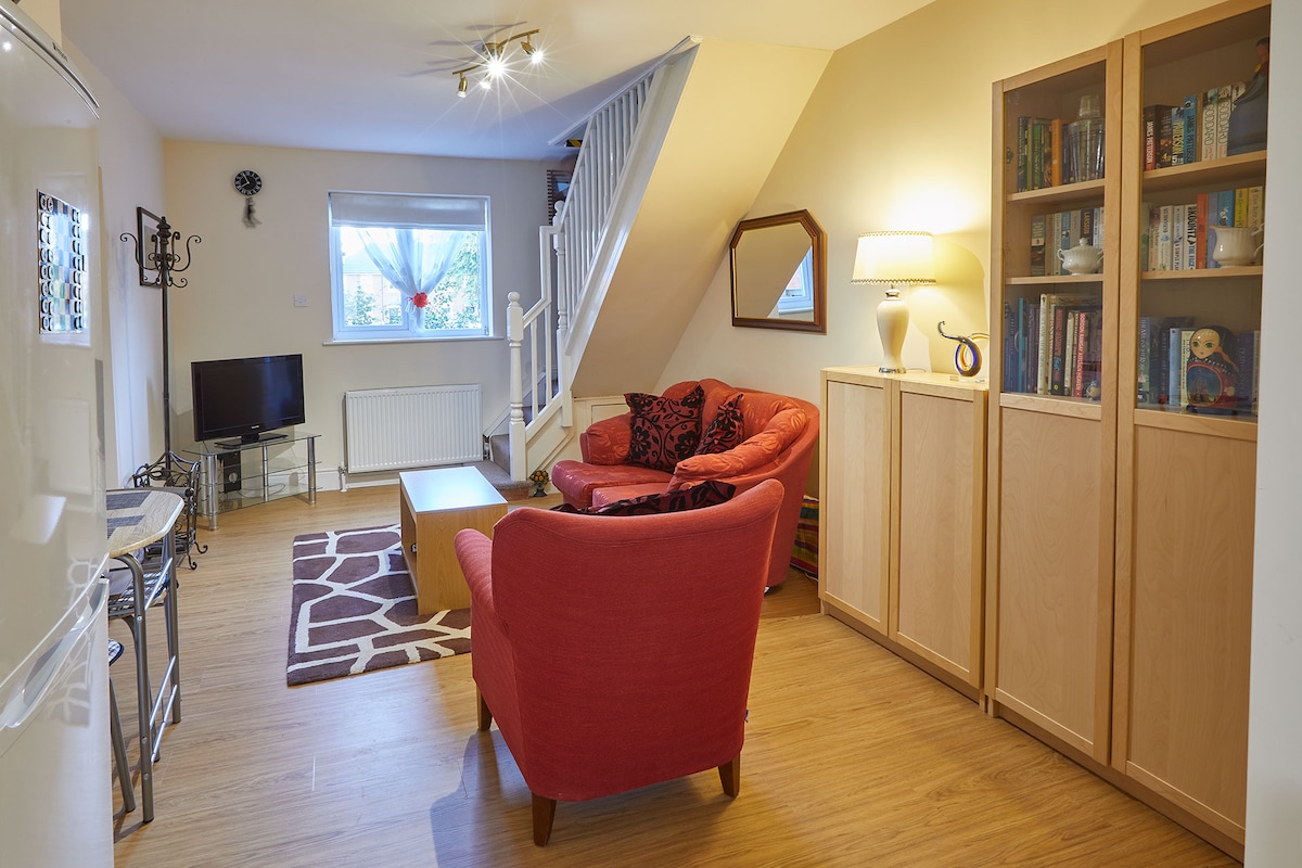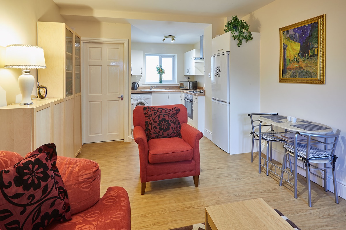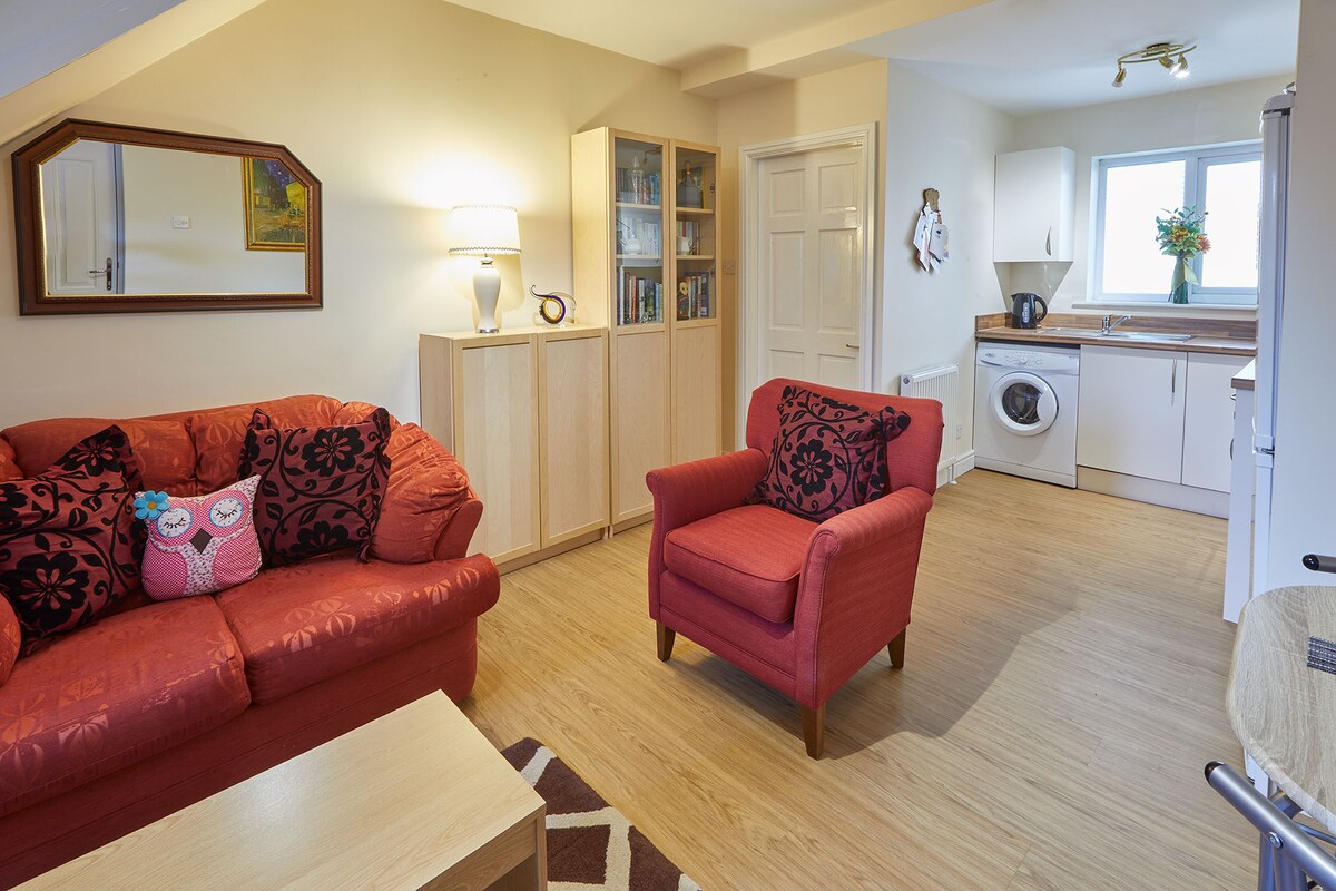 Lovely house for me and my dog! Very clean and comfy. However the gate is really hard to open and breaking very unsafe and hurt my hand every time i tried to open it. Also the house is round the back of a house so the location given is wrong. I did not get a check in code and when I messaged the host I got told to look at my email which I did not get. I had to ring and ask for my code. I was delayed to check in about an hour