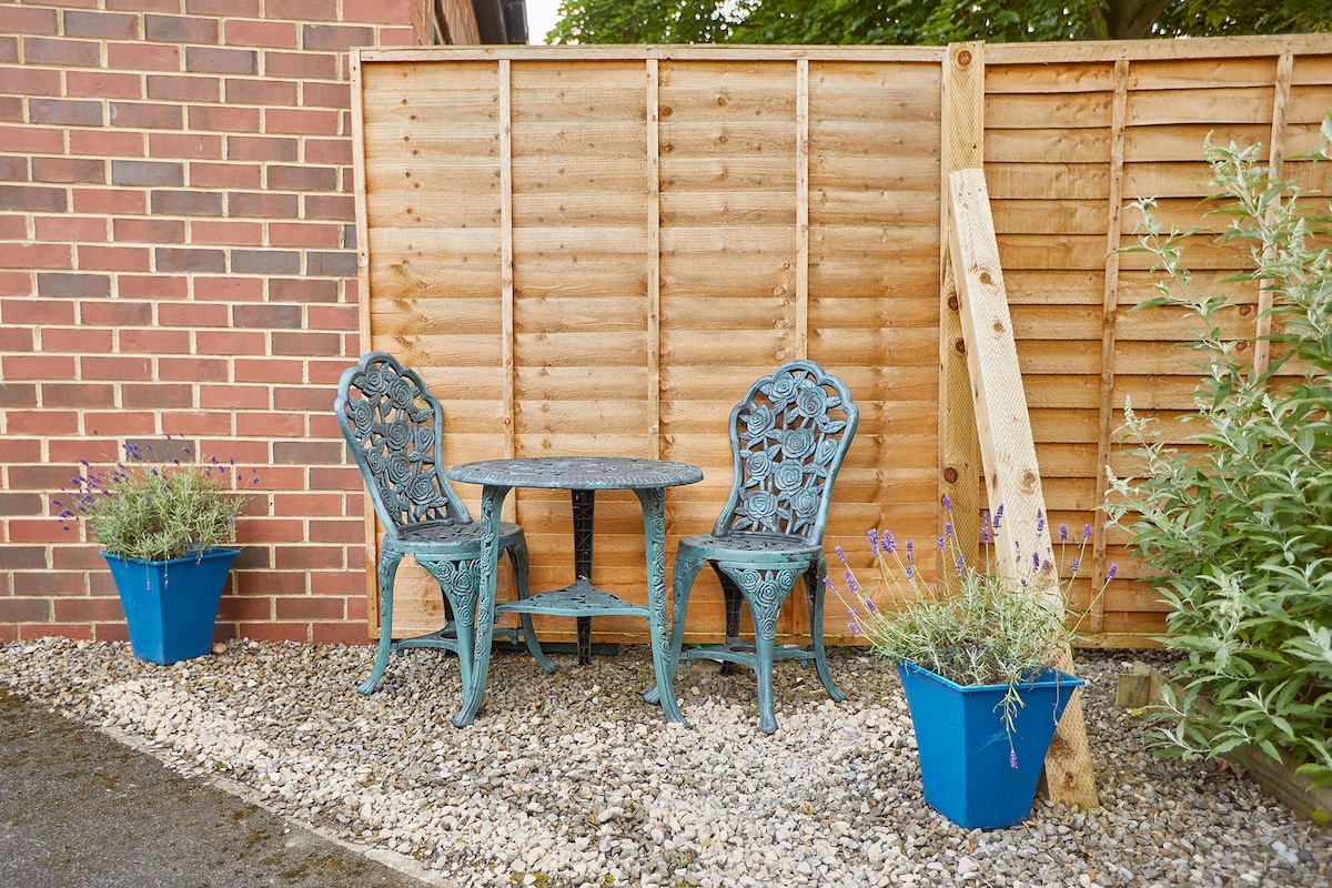 Outside the property there is a patio seating area for two, and a fully enclosed driveway for your canine friends.