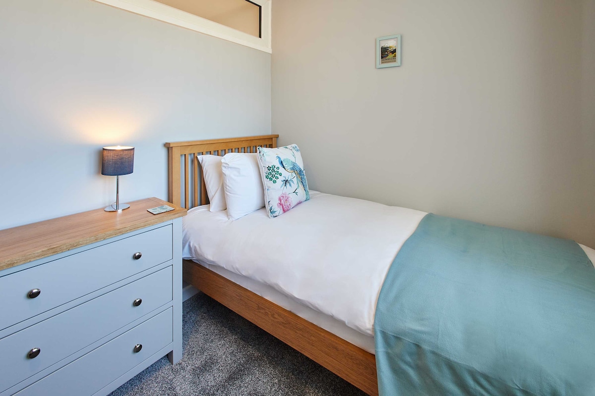 Head to the first floor where you’ll find the two bedrooms and bathroom. With an all-round cosy feel, both bedrooms are spacious and relaxing. There are lamps, bedside tables and light neutral-coloured walls. You’ll enjoy your night's sleep at Station View as both the double bed in the first bedroom and two single beds in the second bedroom boast the finest quality bedding and linens.