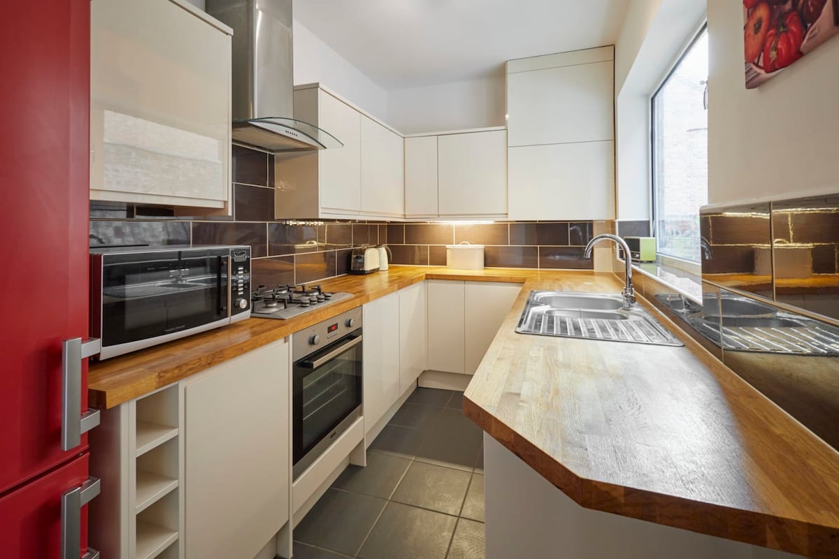 Enter St Denys View, take a right, and you’ll be in the spacious living area. Boasting traditional features, the space has plenty of character. The perfect place to relax during your stay, you can unwind on the comfy sofas and enjoy quality time with your loved ones.The kitchen at St Denys View is a striking space featuring modern appliances so you can prepare meals easily. Here you’ll find cookware, a fridge-freezer, kettle, microwave, oven, hob and toaster.