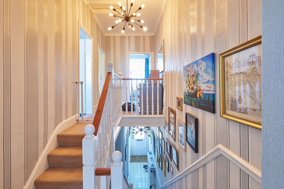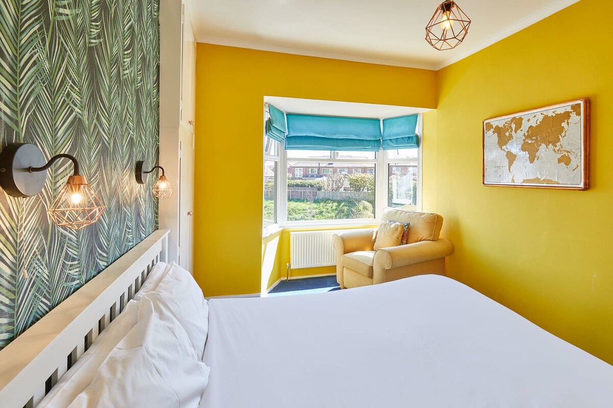 Head upstairs and you’ll find three bedrooms. The first bedroom is a spacious king room with a large bay window where you can enjoy a morning cuppa in the armchair perfectly positioned in the window.