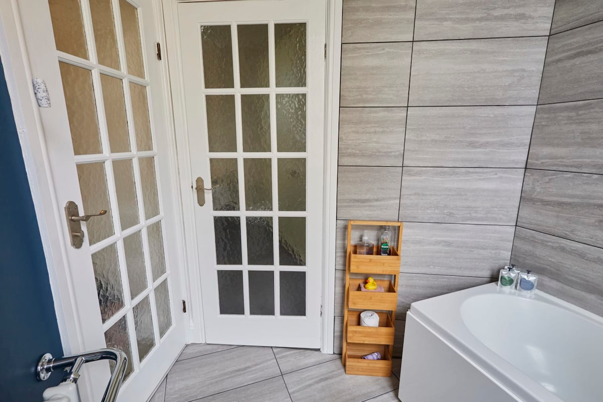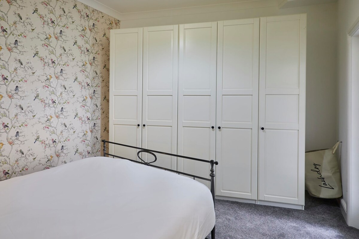 You’ll find a tranquil feel in the bedroom which is achieved with a neutral colour scheme and bird themed wallpaper. There is a comfortable double bed and premium bed linens to ensure you get a great night’s sleep.