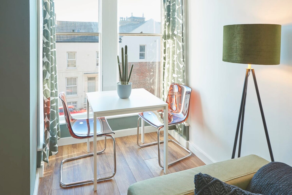 Finally, there is a dining table in the window with seating for two for you to make the most of enjoying your meals together.