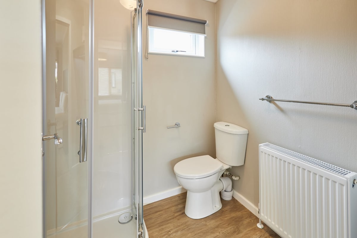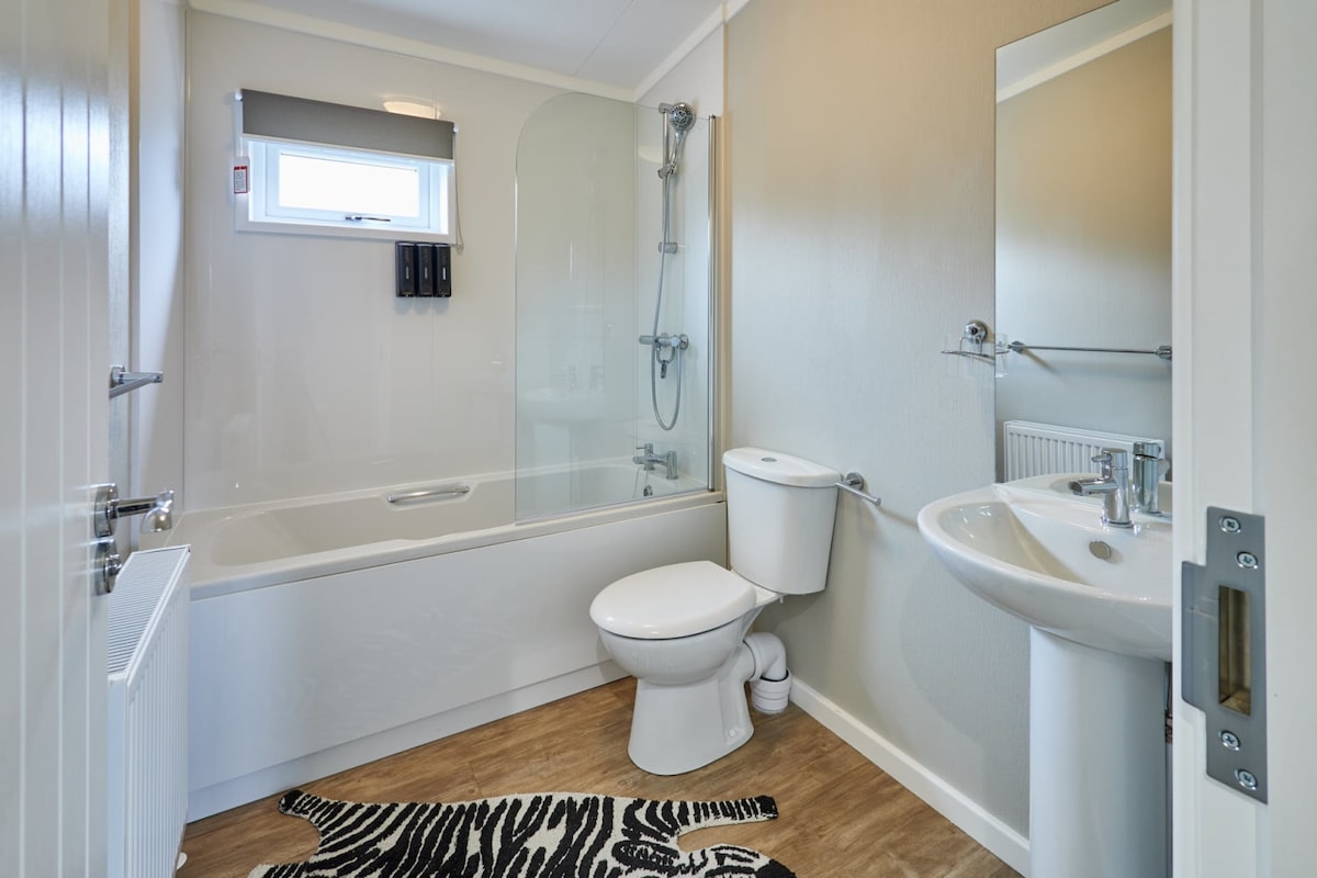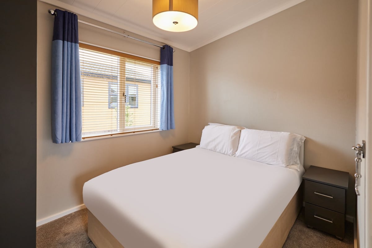 19 The Pines benefits from three bedrooms. Head to the master bedroom and you’ll find a welcoming space with mint green walls, a comfortable double bed, a chest of drawers, and a flat screen TV. The space also boasts an ensuite shower room.