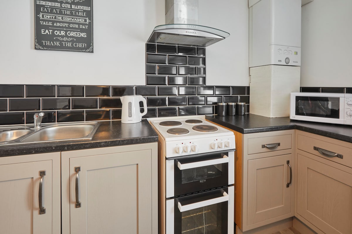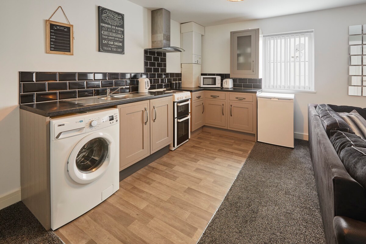 Driftwood has an open plan kitchen, living and dining area. Modern in style, the kitchen has an oven, hob, microwave, kettle and toaster so you can prepare meals easily during your stay.With a flat screen TV and a large comfy corner sofa, the living area is perfect for relaxing after a day on Skinningrove’s beautiful beach, visiting one of the area’s attractions or a busy day at work.