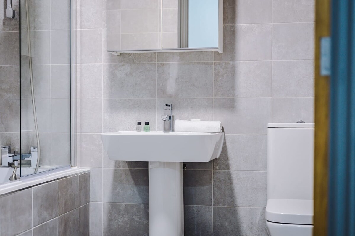 Accommodation was central, as described and very comfortable. However could get noisy through the night due to a large Premier Inn and pub close by. Local Tesco round corner was very handy. Had to pick up key from a local corner shop which was a little confusing but easily sorted. All in all had a fantastic stay.