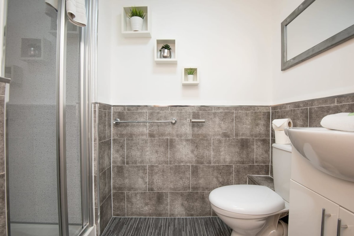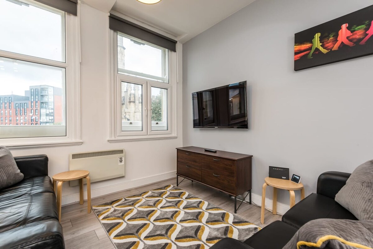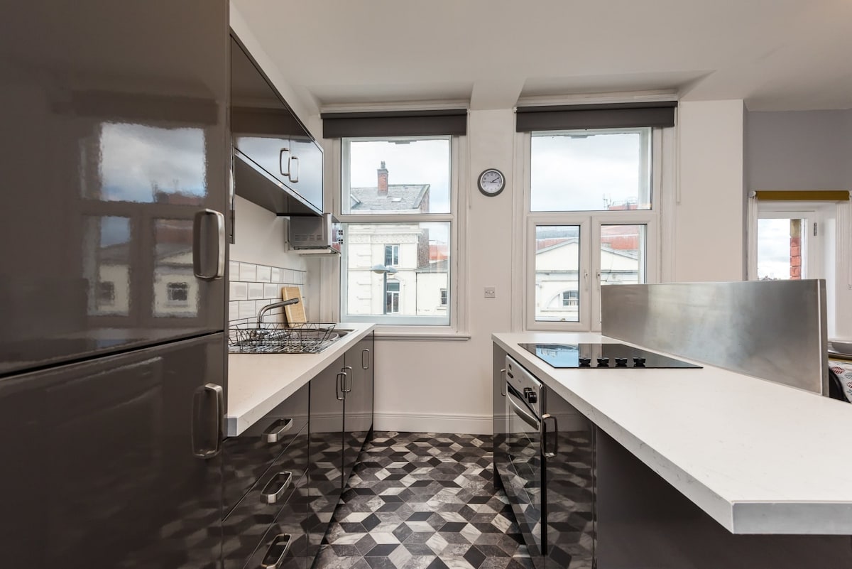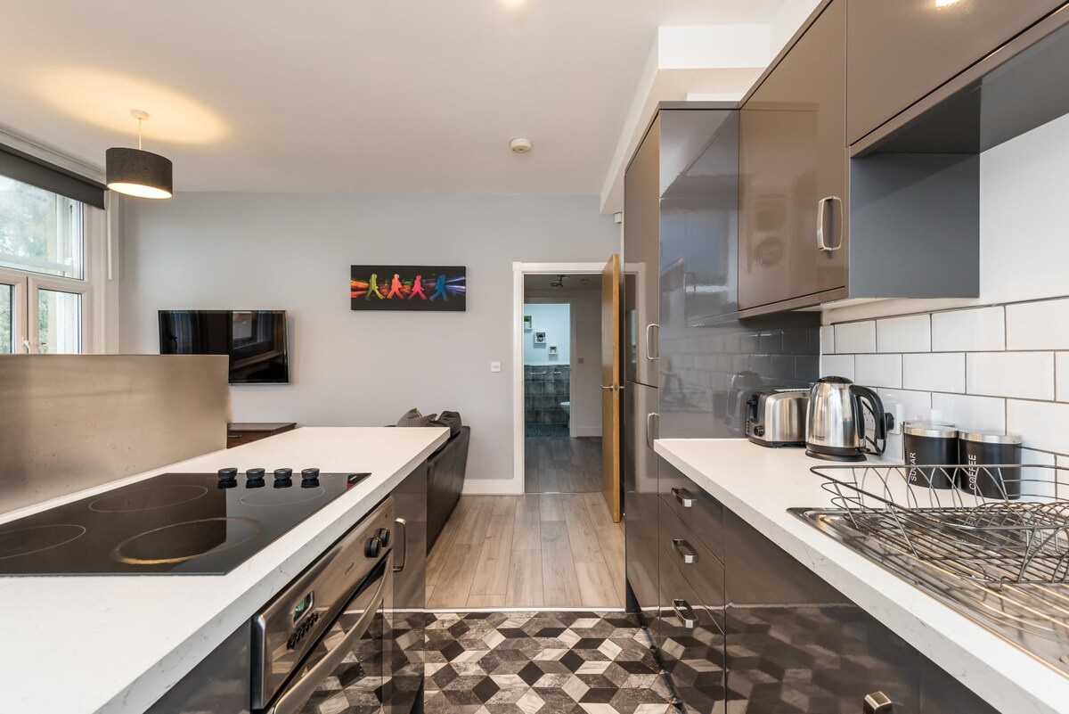 Reached by 2 flights of stairs, this apartment provides a snug and cosy feel for your stay. It has an open plan living/kitchen space with views of St Luke's Church, the kitchen is fully equipped with everything you'll need to cook up some delicious meals and the living room is the perfect place to wind down after a day of exploring! The living room has a double sofa bed, ready to sleep 2 guests.This apartment also has a comfortable double bedroom with a full length mirror and a chest of draws, and a spacious, modern bathroom.
