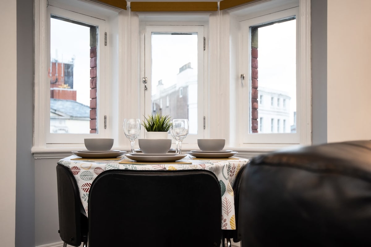 This was my second time staying at his property. It is located really well for access to all the Liverpool fun, but it can be noisy due to traffic and late night eating spots across the street. The bedroom is quieter as it’s set back from the corner. It has a lovely view of the bombed out church and is spacious.