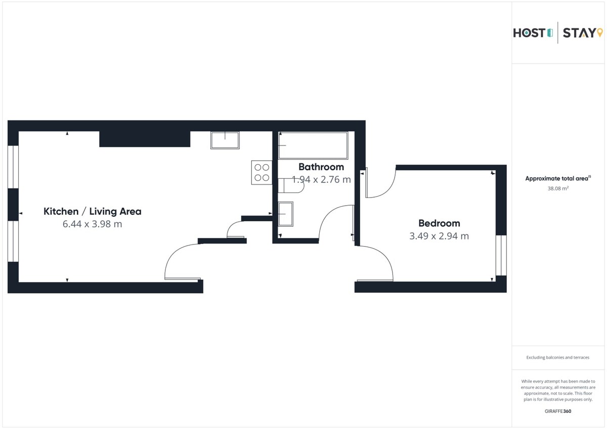 Spread across two floors, you have access to an open-plan living, dining and kitchen area, one bedroom and a family bathroom.