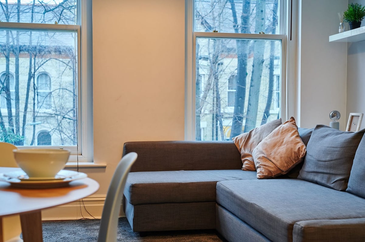 Whilst the living room boasts a lovely view of the neighbourhood, we highly advise parents to supervise their children, as the sash windows are positioned at a low height and can be fully opened.