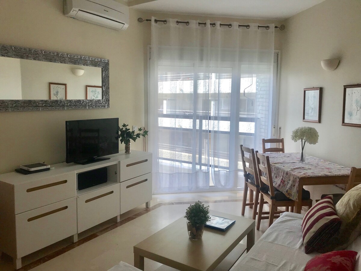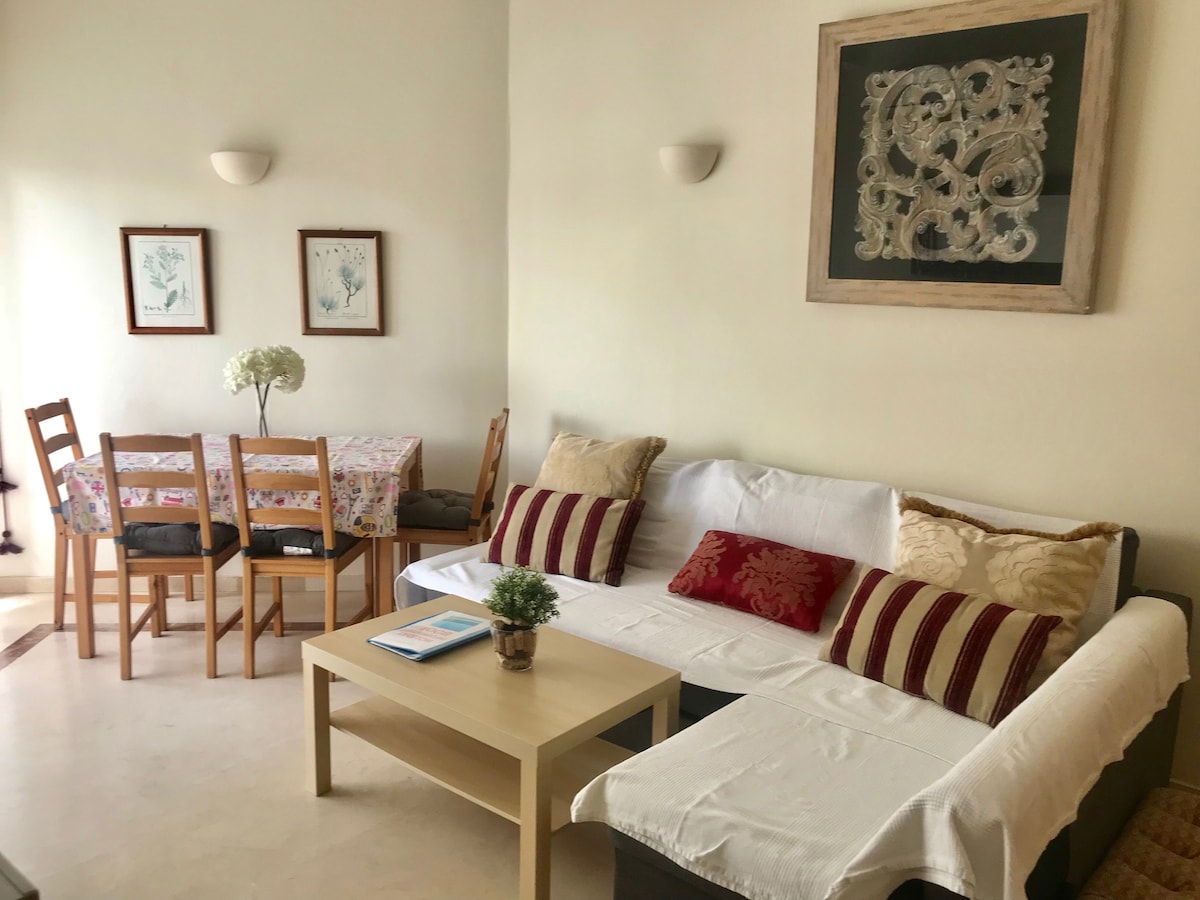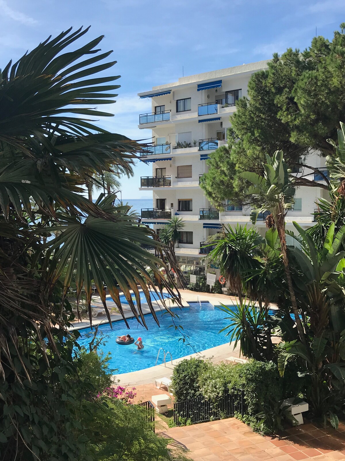 In a great location just by the beach and with access to two large pools and cheap sunbeds, this is a very comfortable place to stay. Very comfy furniture, a good terrace (not that private, with a view to the building directly opposite, but you can still see the sea) and a TV with lots of channels in all kinds of languages. The kitchen is small, but well equipped, apart from the fridge, which could do with replacing. You also have to buy all your own cleaning detergents and clean the place yourself, although towels and sheets are replaced weekly. Any questions to the host were answered without delay, including at the weekends. Prices in Marbella have risen substantially post-pandemic though, so it was not cheap.