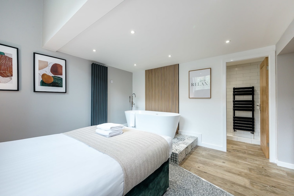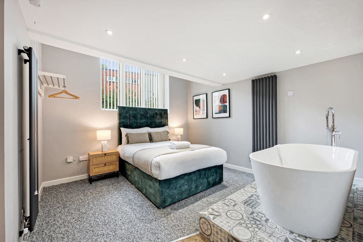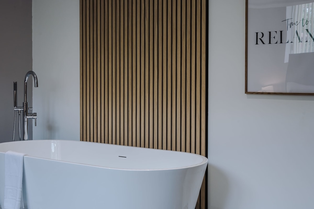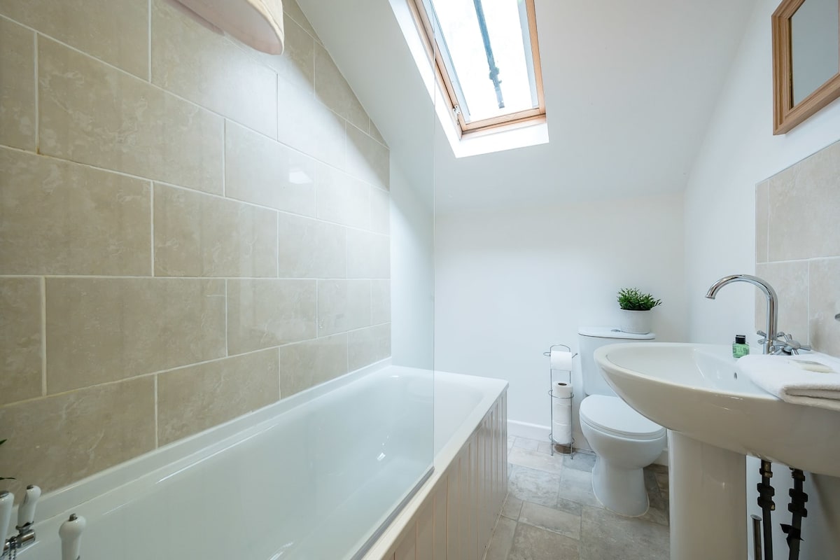 • Has a lovely bath in the bedroom and a separate ensuite with shower and toilet.
