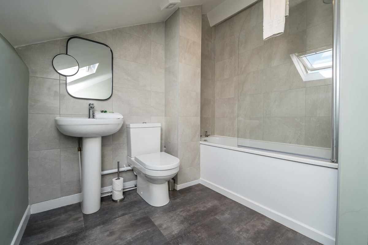 • Fitted with Shower over Bath, Standard sized Bath, Toilet and Basin.