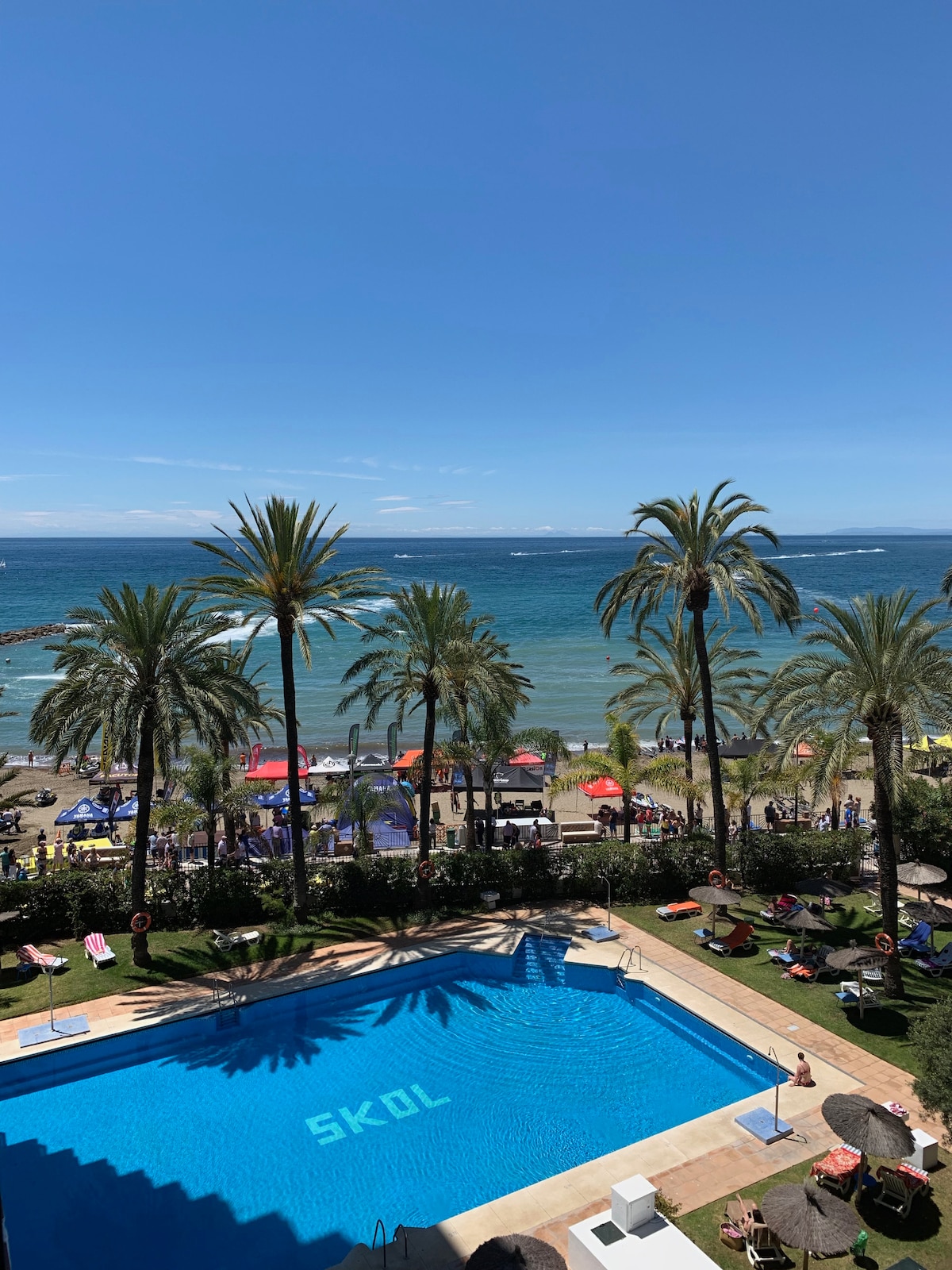 This is a just refurbished with top quality unit. this beautiful apartment has 1 bedroom with twin beds, a large sofa bed in lounge. located on 1st floor, East orientated with morning sun, terrace with views to the beach and mature tropical garden, 2 air con units, extremely cool in summer, fully equipped kitchen, walk in shower, WIFI. the ideal spot for your holiday.Skol Apartments Marbella are self catering apartments set beachfront on central Marbella boardwalk with all services and amenities nearby. We offer a wide range of studios, 1-2-3 bedrooms apartments. They're all fully furnished with equipped kitchen as well as air con, heating, wifi, balcony with sea views, welcome pack and 24/7 reception and attention.