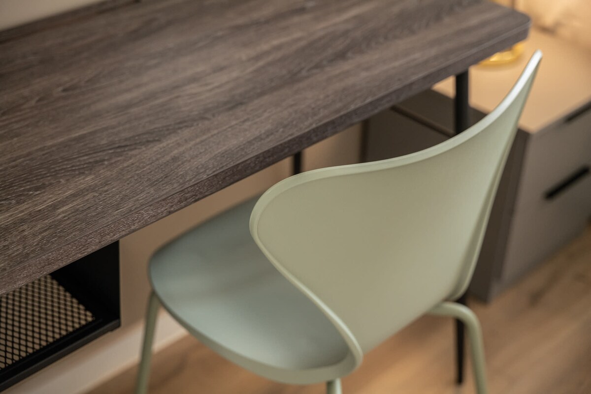 The dining table has six chairs in velvet grey to accommodate all six guests so you can enjoy meals together with the rest of your group.