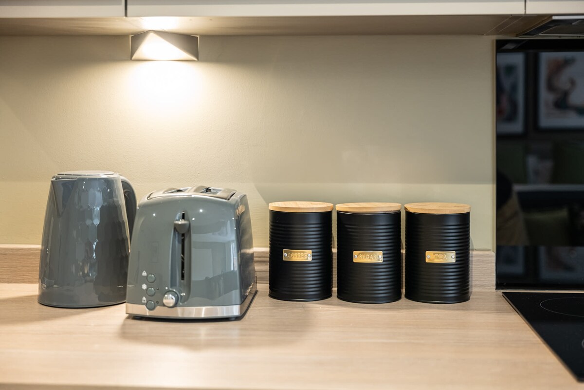 Our kitchen is fully equipped with a microwave, kettle, oven, toaster, hob, Nespresso coffee machine, and much more!