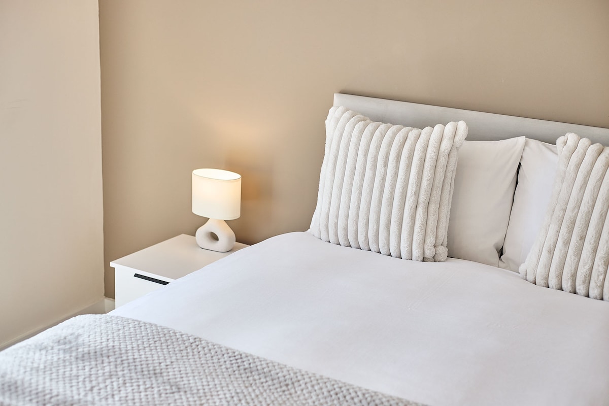Richmond Place 307 is beautifully designed with beige and white interiors, complemented by pops of colour from its modern furnishings.Upon entry, you will be welcomed by an open-plan living, dining, and kitchen area. The kitchen is fully equipped with everything you need to feel at home, including a hob, oven, microwave, kettle, refrigerator, toaster, and more. For added convenience, there is also a washer/dryer.