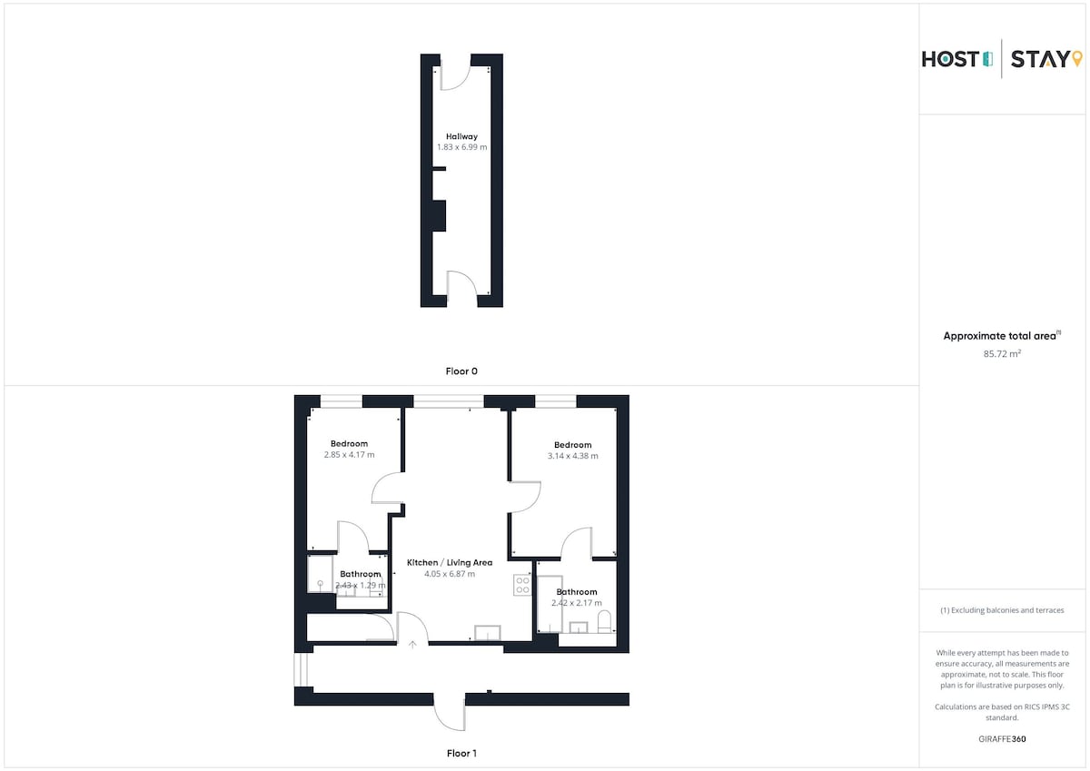 The flat was new and about 20-30mins walk to the city centre and shops and bars. Most flats appeared to be Airbnb as the lobby was full of key boxes. Location was quiet and flat was very warm. Limited utensils for anyone wanting to cook. The location is more industrial than residential. We found the towels were dirty/stained and we didn’t get a full set. We contacted Host & Stay who were very helpful, albeit they were not responsible for the housekeeping. There had obviously been a leak in the bathroom as the ceiling was badly stained. We left some clothing and they were good enough to let us know. We asked if they could post them back to us, which they agreed they would ask housekeeping to do. This was nearly 2 weeks ago. Unfortunately we are still waiting to receive the clothing or even how much the postage will cost. I’m beginning to wonder if we will see our clothes again 🙁 Very disappointing.