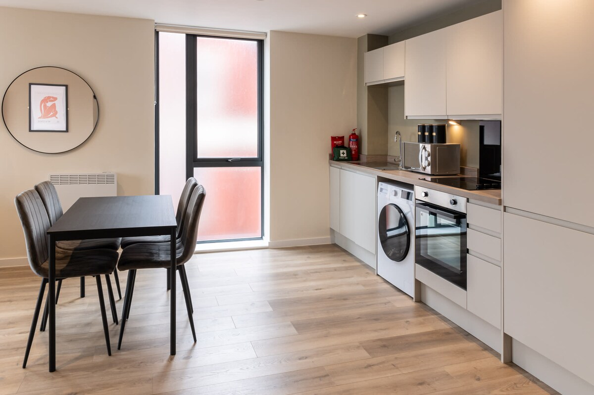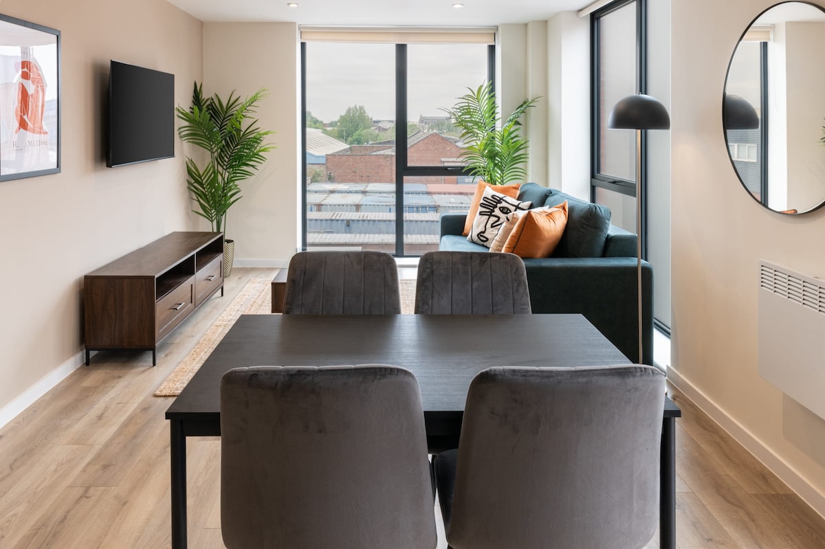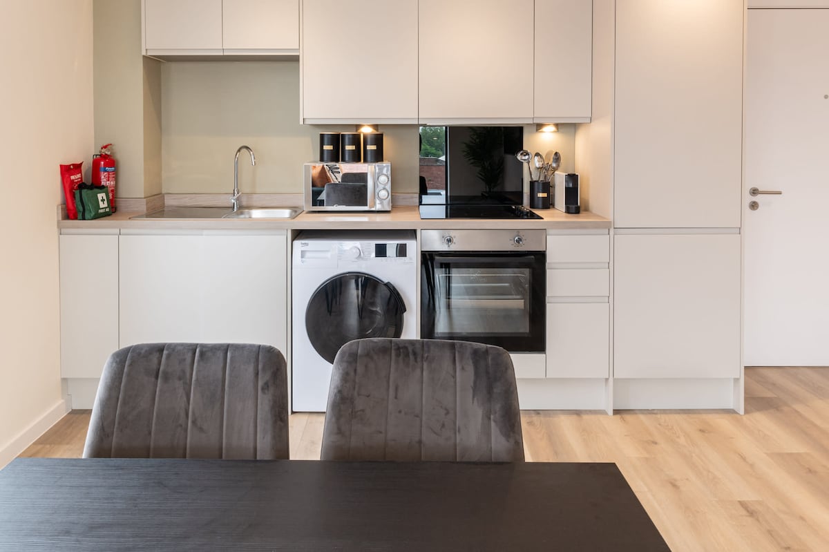 Richmond Place 206 is a beautifully refurbished one-bedroom apartment located in the northern area of Liverpool.The spacious open-plan living, dining, and kitchen area offers convenience with everything you could need for a stay away from home. The wall-mounted Smart TV is perfectly placed in front of the sofa bed in the living area - unwinding has never been easier.