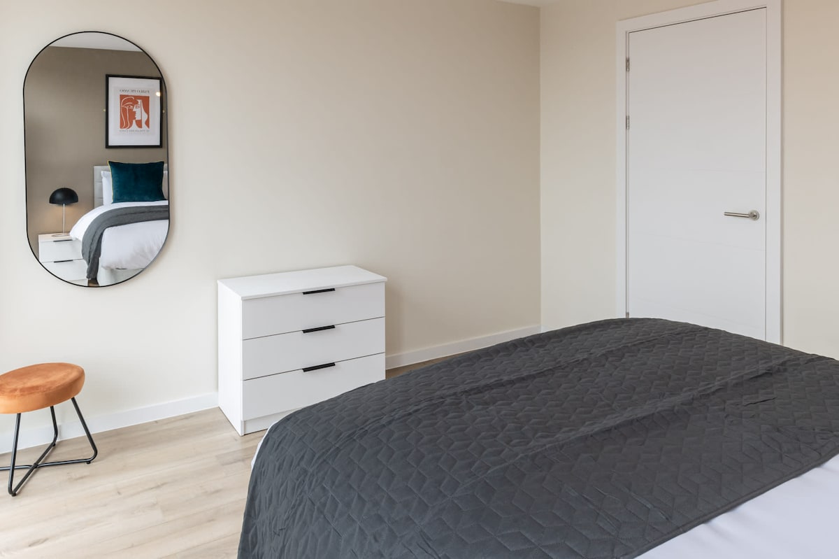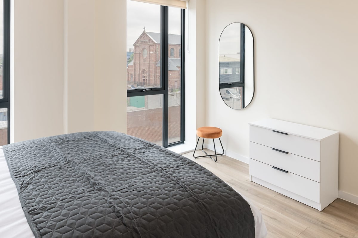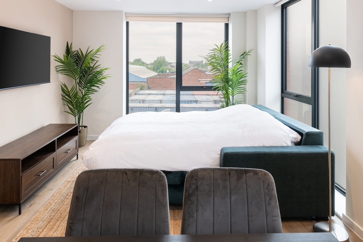 Situated in close proximity to Everton and Anfield, and just a short drive away from Liverpool city centre, Richmond Place 206 is in the perfect location to explore the city and enjoy a quieter lifestyle on the outskirts. Sleeping up to 4 guests with one double bedroom and a comfy sofa bed in the living area, you can stay alone or invite a small group of friends and family! The modern interior and floor-to-ceiling windows allow plenty of natural light, making it the perfect place to relax.