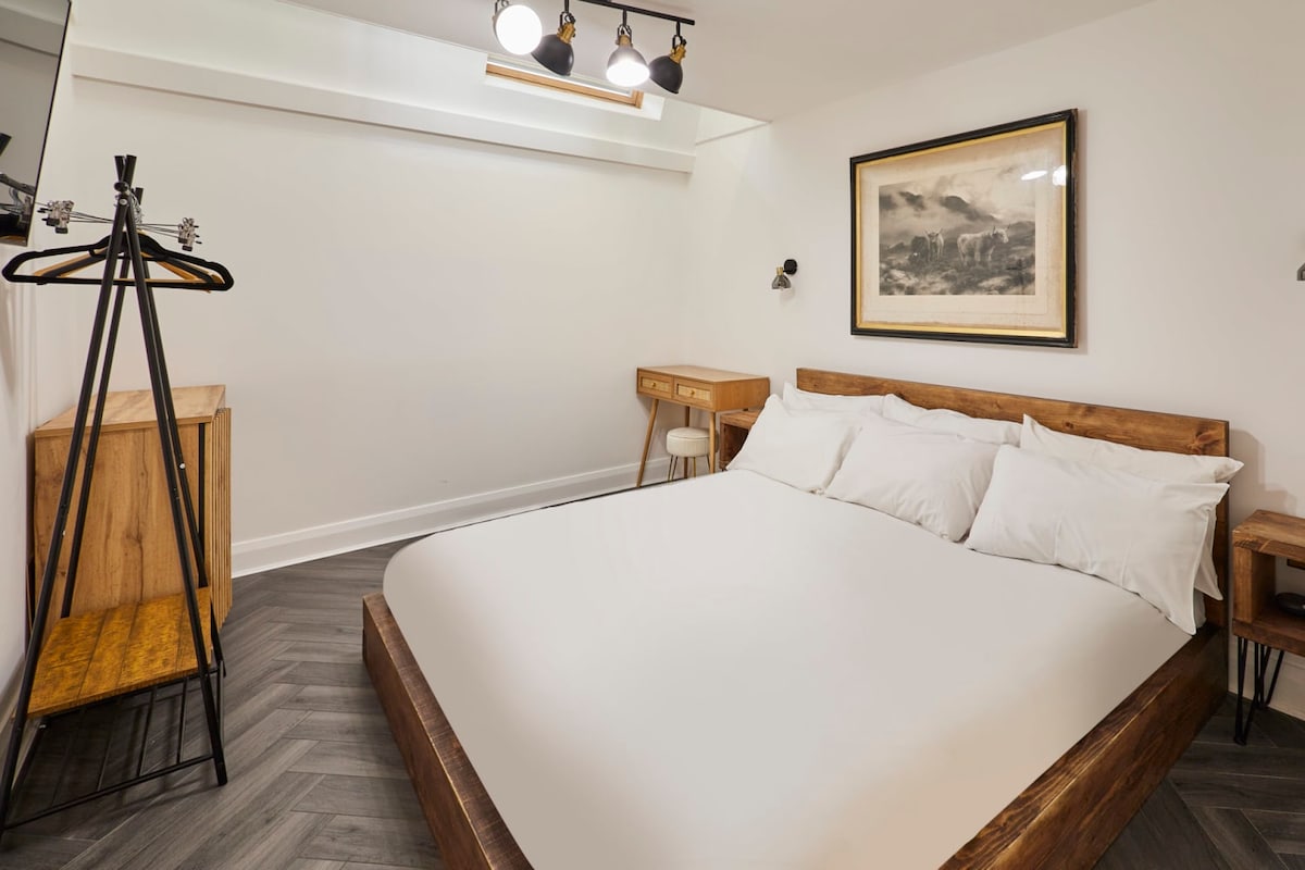Designed as a Smart Home, the apartment comes with a 70-inch Smart TV for streaming your favourite apps, an electric fireplace right in the living room and voice command for the lights at home!