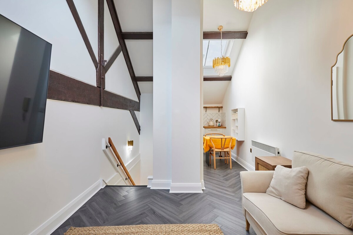 Queen Square Hideaway is situated in the city centre with some of the best restaurants, pubs and bars within a few minutes walk away. Located in Liverpool's business district, it's the perfect base for leisure and business travellers.This lovely attic apartment is on the top of the three-storey building and has one bedroom and one bathroom spread across two floors.