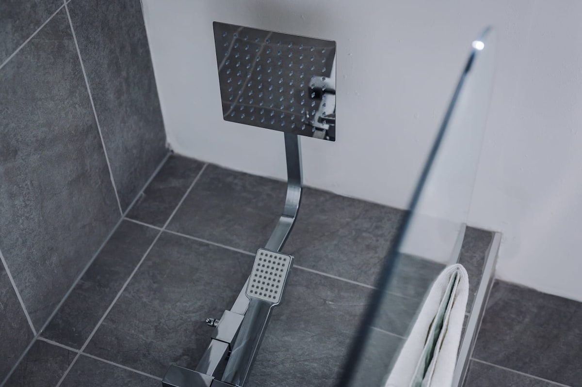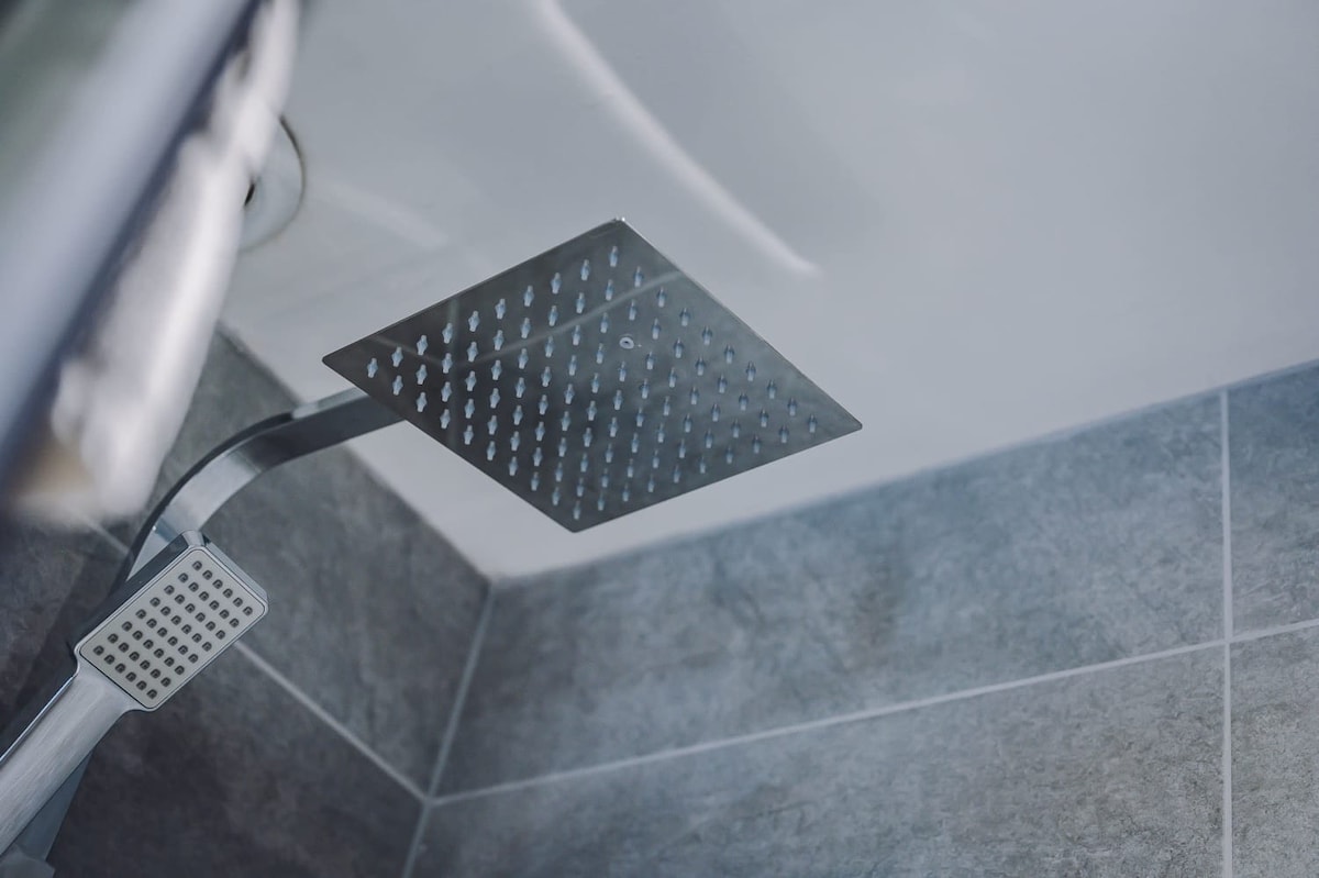 The primary bathroom features a bathtub with an overhead shower, perfect after a long day exploring the city.