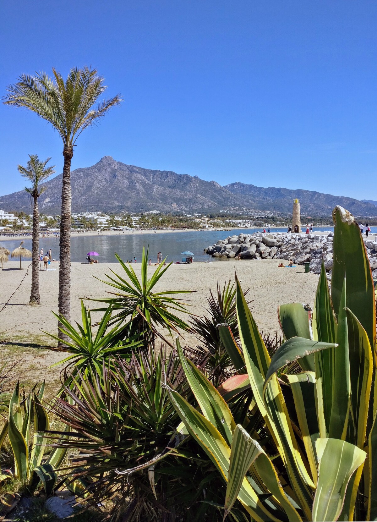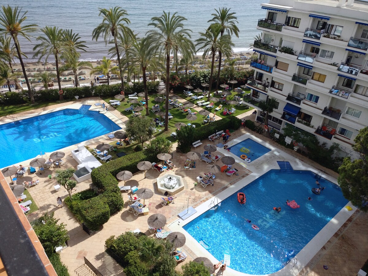 Sea views and direct access to the seaside promenade. Views to Parque de la Constitución, and 10 minute walk to Marbella’s Old Town. Next to restaurants and shops.