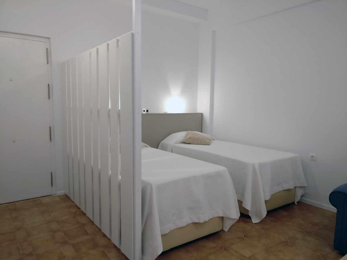 Living-bedroom area which offers 2 beds (0.90 m), seaview terrace, fully equipped exterior kitchen and bathroom (washbasin, toilet and shower).Guest access
