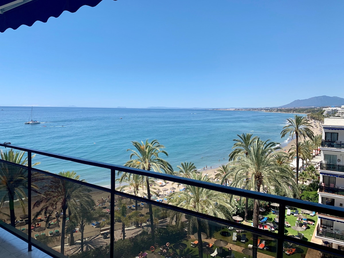 The Skol Apartments Marbella are self catering apartments set on the very beachfront on central Marbella boardwalk with all services and amenities nearby. We offer a wide range of studios, 1-2-3 bedrooms apartments located on various floors and different aspects but all with great views of the beach, pool, park, garden and sea.