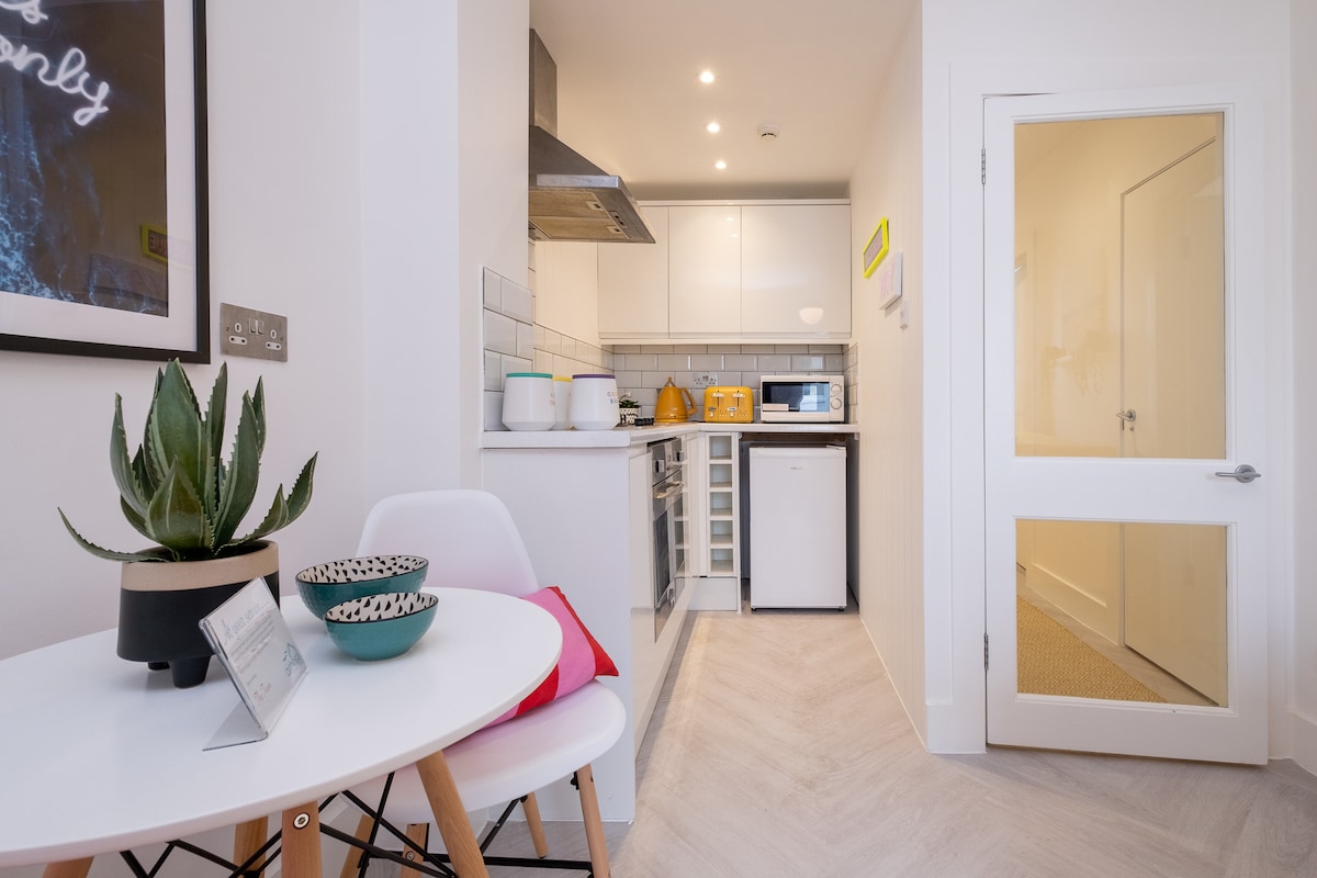 Welcome to Good Vibes, a beautifully designed and centrally located two-bedroom apartment, just a short walk from Brighton train station. Set on the first floor, this bright, contemporary space is perfect for friends, family, business, or leisure stays. Thoughtfully equipped with everything you need for a short or extended stay, it’s a cosy, bijoux retreat in the heart of Brighton.The location couldn’t be better – from here, you can easily explore all that Brighton has to offer. Take a short stroll to North Laine for independent cafes and unique shops, head to Churchill Square for high street shopping, or enjoy the South Lanes for an array of cafes, restaurants, and pubs. The beach, Brighton Pier, and the i360 are all within reach, as well as the vibrant Seven Dials area, home to the popular Flour Pot Bakery and Small Batch Coffee House.