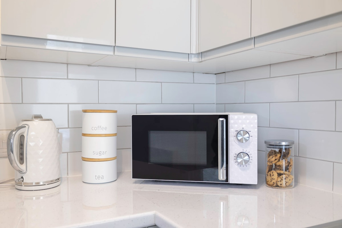 Fully equipped kitchen with everything you need to cook a delicious meal: cookware, crockery, cutlery and glassware. We also provide all the essential amnesties for your stay, including tea, coffee, sugar and cooking basics. A microwave is also available for your convenience.