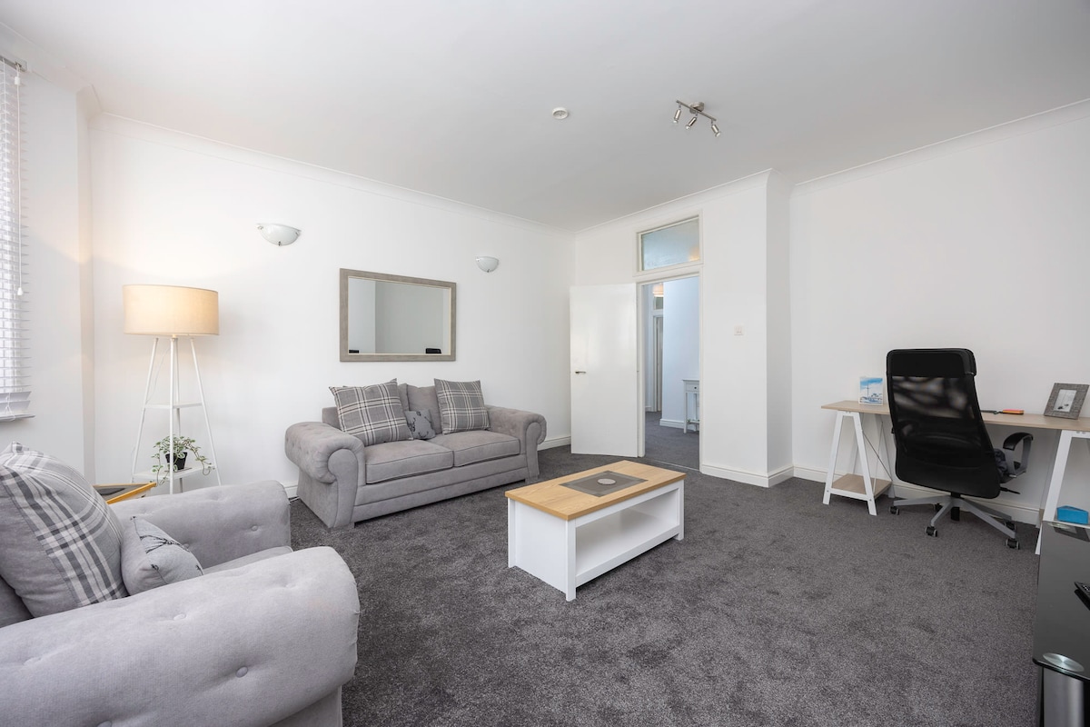 An immaculately clean, newly refurbished, quiet and comfortable space. We have high standards and they were met. Kitchenware and oven looked barely used. Good size fridge and freezer for 2 ppl. Minutes away from sea front. Local cafés restaurants and grocery store. Kingsize bed is memory foam- on the softer side, sofa bed on the harder side, so there are options for all tastes! TV included Netflix, BBC iplayer, Youtube, etc. Only minimal downside was that all the cooking smells from above waft into the bedroom, and you can hear neighbours talking during the day. Overall, highly recommended and would definitely return. Thank you!