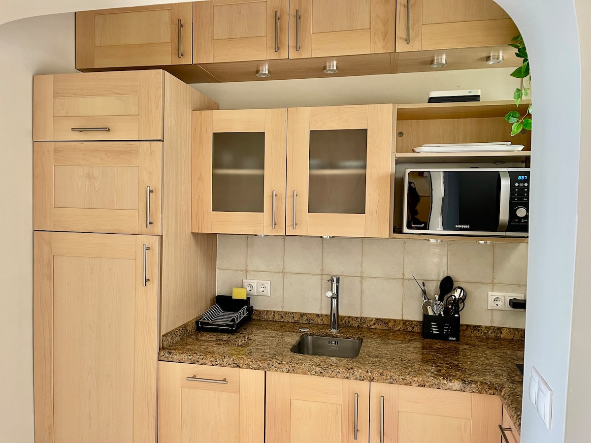 This one-bedroom studio is perfect for couples and digital nomads looking for a quiet and central spot in Marbella with spectacular views to the Mediterranean.