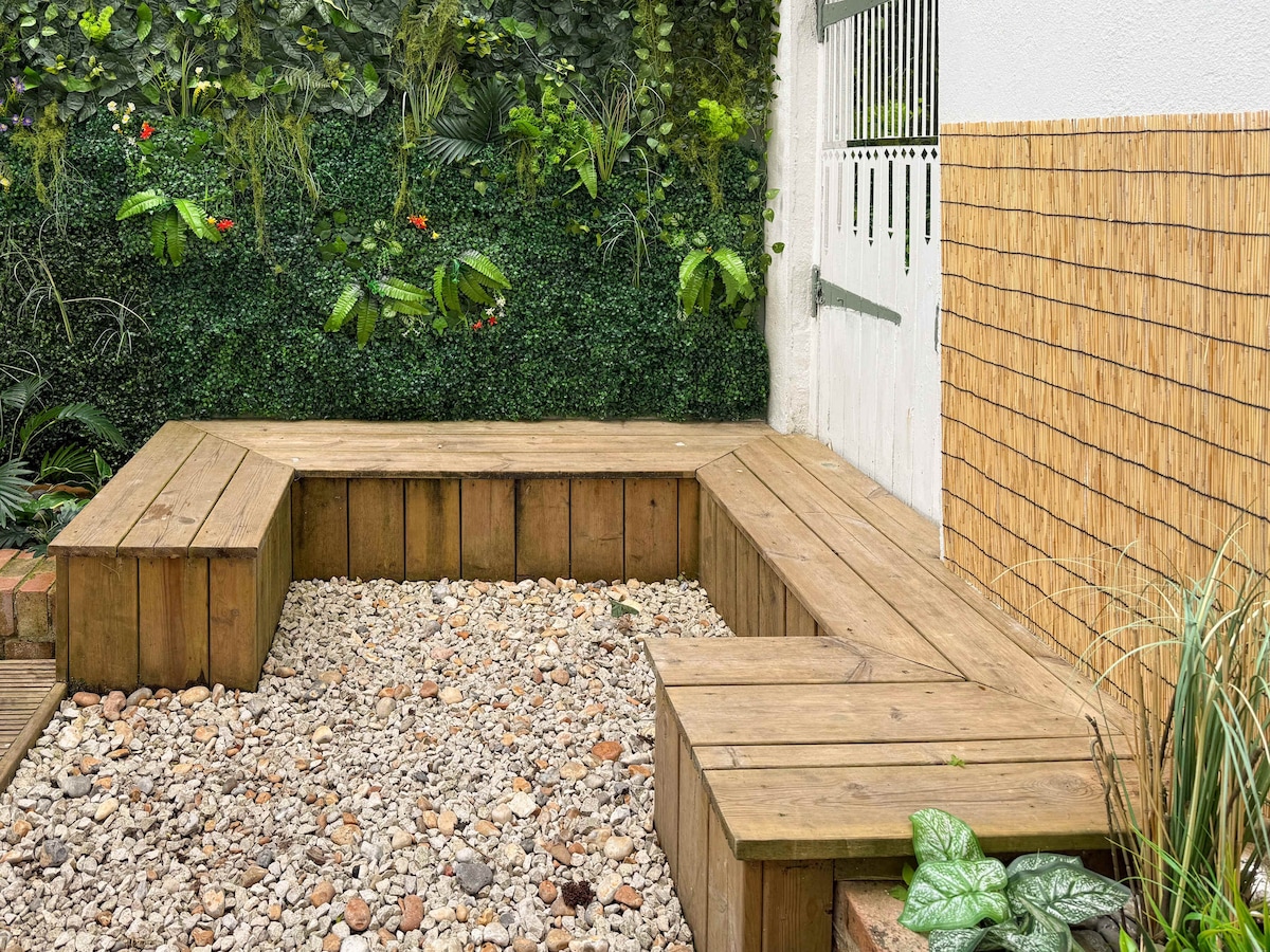 Outside, the private courtyard offers a peaceful retreat, ideal for enjoying a book, a coffee, or perhaps something a little stronger in a tranquil setting.