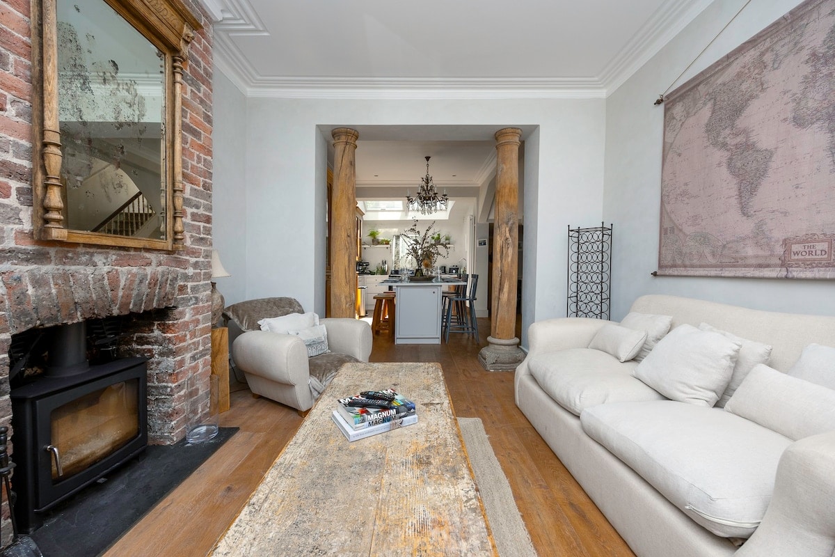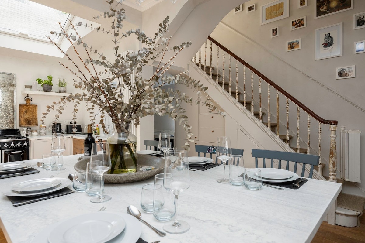 Step into this super stylish family home with meticulous attention to detail and sleek finishes throughout. Ideal for entertaining, the extraordinary open-plan kitchen is every chef's dream! Enjoy a scrumptious meal at the dining table for up to 8 guests, or the last of the rays with a drink in the sun trapped garden! Nestled in the corner of a leafy, residential road, this four storey home offers the perfect retreat tailored for families or a group of friends seeking an escape.The glamorous living area, in particular, the super comfortable sofa (which folds out into a double bed) is perfect for an evening of chatting, TV or reading your favourite book. A fully equipped kitchen and a dining table for up to 8 guests are surrounded by an array of eclectic, artistic details. The promise of a magical stay extends into the kitchen with an Aga, fridge freezer and a dishwasher all at your service. Complimentary coffee, tea, salt, pepper, and cooking oil await, adding plenty of convenience to your stay.