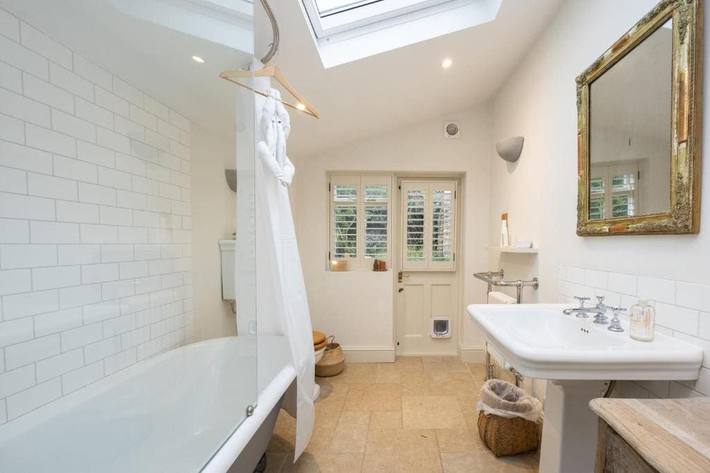 Freestanding bath with modern shower, underfloor heating, bathroom toiletries and essentials, soft bathroom towels; the ultimate relaxation space!
