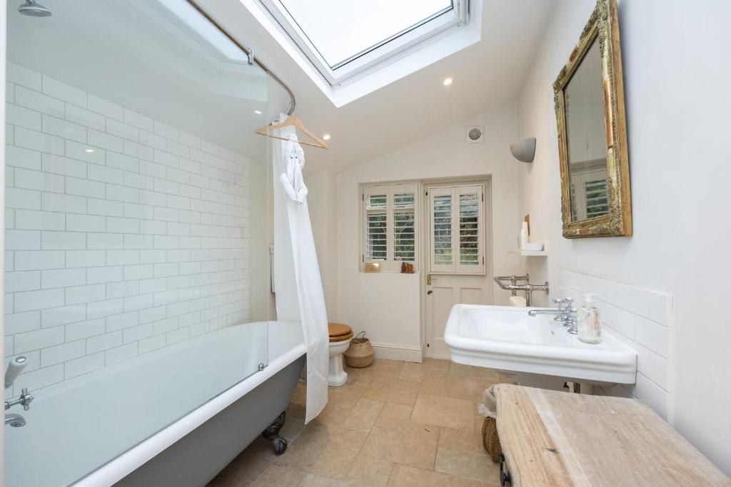 Located in a tranquil lane, this two-bedroom cottage boasts a sunlit private garden & a delightful courtyard. Offering a haven of serenity amidst the lively atmosphere of central Brighton, it's only a leisurely 10-min walk to the beach. There's a well-equipped kitchen, two bedrooms accommodating 4 guests, & a charming living room with a log burner and stripped wooden floors. Enjoy solitude in the freestanding bath or socialize with friends in the private garden or watch the Smart TV together.