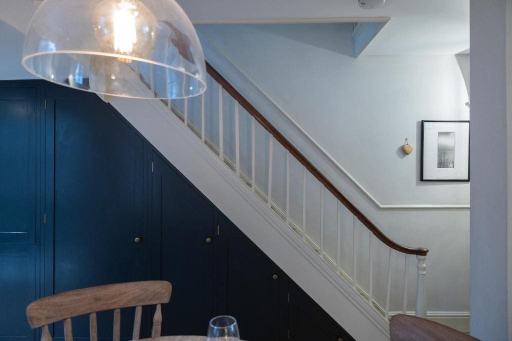 Upstairs you’ll find two lovely bedrooms. The master bedroom benefits from a king sized bed with plenty storage for your personal belonging. In the cosy second bedroom you'll find 2 single beds. We also provide fresh white linen, towels and toiletries for every guest to use during their stay.